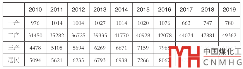 表1 2010~2019年分產業(yè)用電量(單位:億千瓦時)