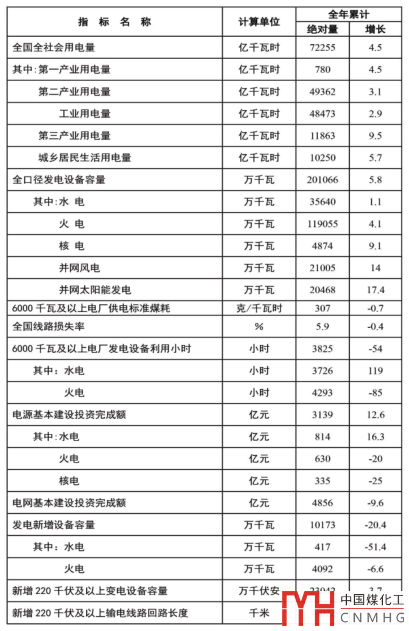 2019年全國電力工業(yè)統(tǒng)計快報一覽表
