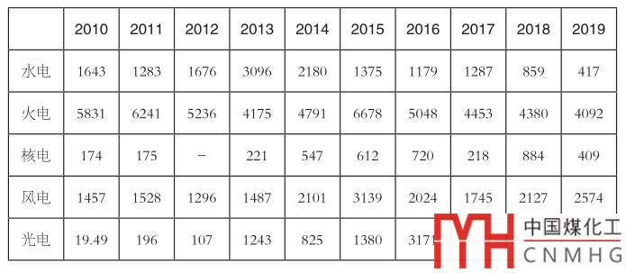 表3 2010~2019年各類發(fā)電新增裝機情況(單位:萬千瓦)