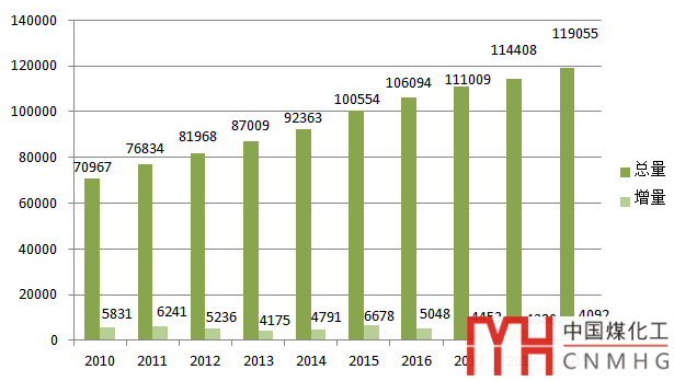從裝機總量看,近十年來,我國發(fā)電裝機保持增長趨勢。2010~2019年,我國發(fā)電裝機累計容量從9.66億千瓦增長到20.11千瓦,已連續(xù)七年穩(wěn)居全球第一裝機大國地位。