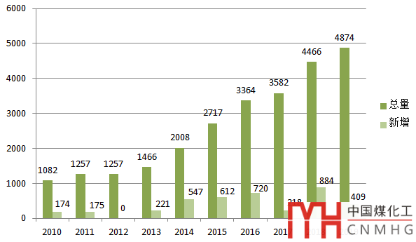 圖18 2010~2019年火電裝機和新增裝機情況(單位:萬千瓦)