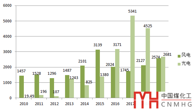 圖16 2010~2019年風光發(fā)電新增裝機情況(單位:萬千瓦)