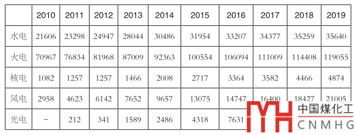 表2 2010~2019年全國電力裝機結構(單位:萬千瓦)