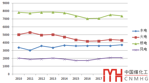 從全國發(fā)電設備平均利用小時來看,除2011和2018年發(fā)電設備平均利用小時數略有回升外,近十年總體呈下滑之勢。自2015年開始,全國發(fā)電設備平均利用小時數開始跌進4000小時以內。隨著供給側結構性改革效果的顯現,2018年平均利用小時數略微回升,電力供需形勢由總體寬松轉為總體平衡。2019年電力供需形勢繼續(xù)延續(xù)總體平衡態(tài)勢。