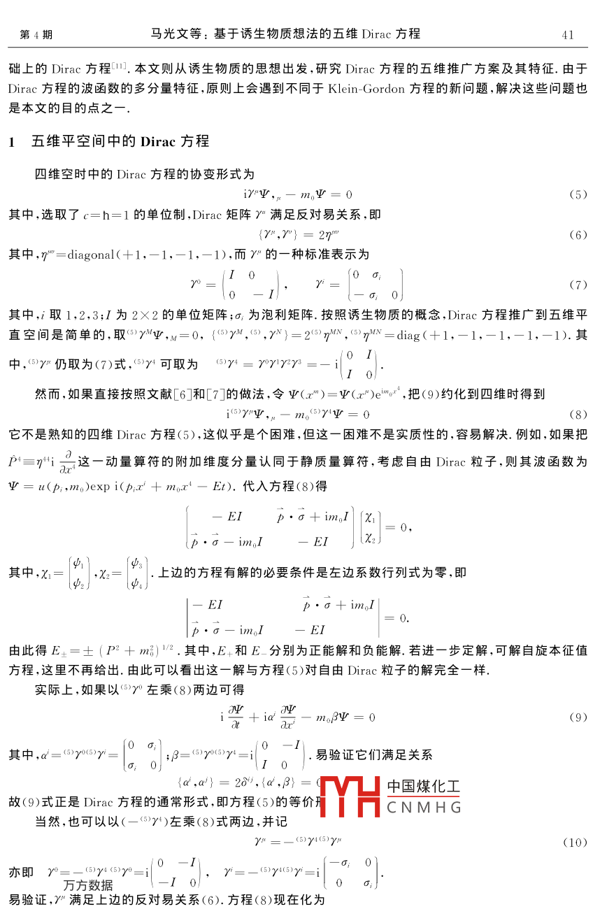 基于誘生物質(zhì)想法的五維Dirac方程