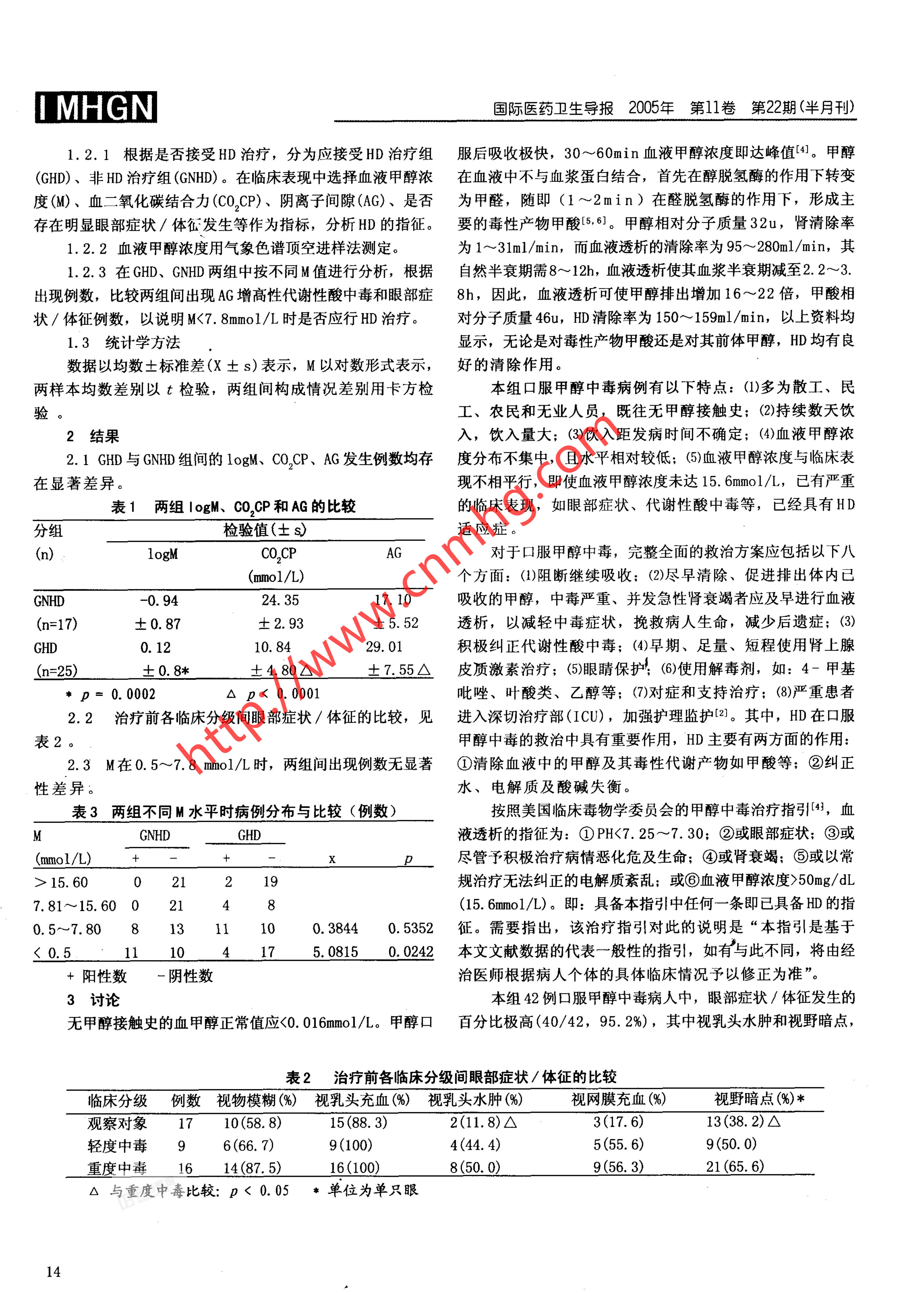 血液甲醇濃度測定在口服甲醇中毒治療中的意義