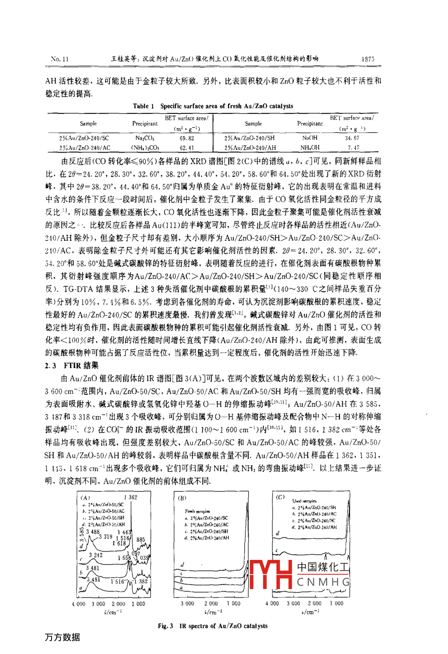 沉淀劑對AU/ZnO催化劑CO氧化性能及催化劑結(jié)構(gòu)的影響