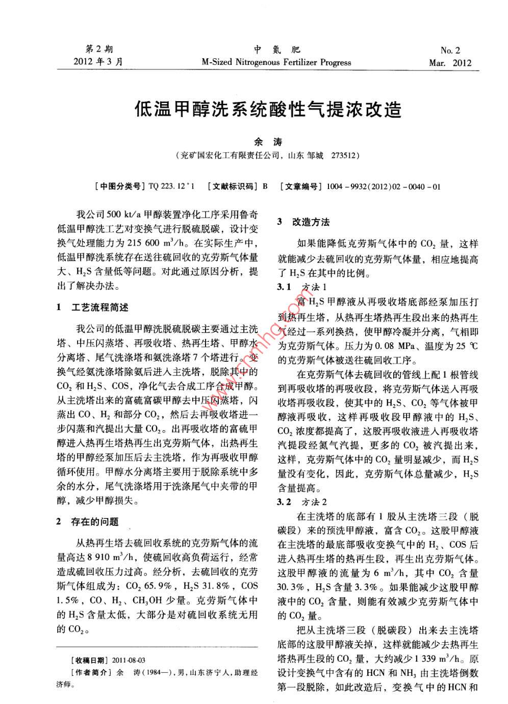 低溫甲醇洗系統(tǒng)酸性氣提濃改造