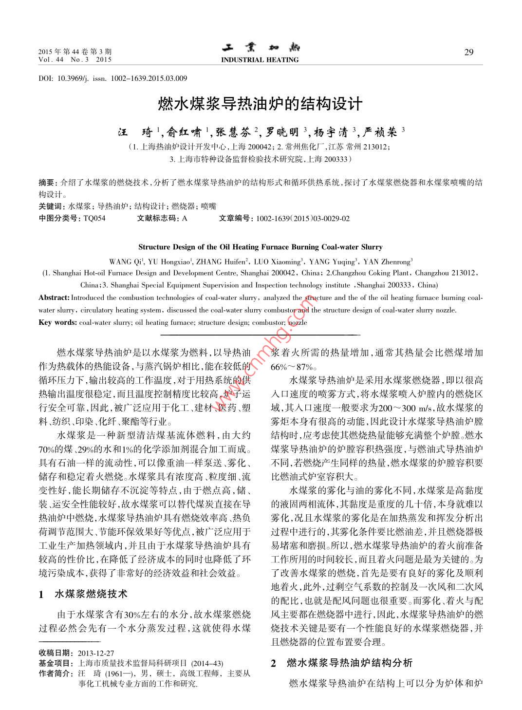 燃水煤漿導(dǎo)熱油爐的結(jié)構(gòu)設(shè)計(jì)