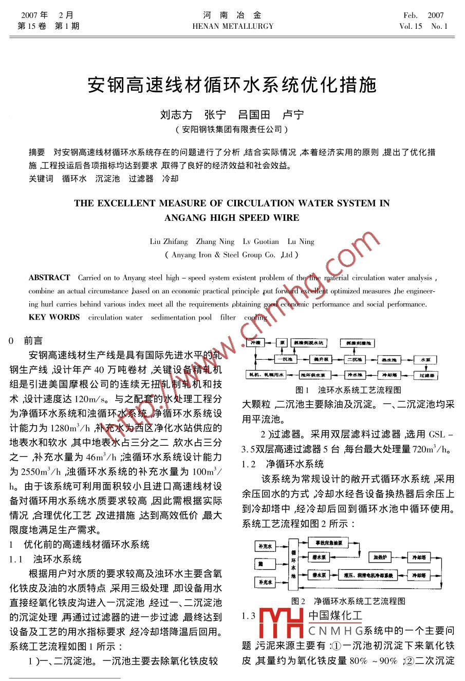 安鋼高速線材循環(huán)水系統(tǒng)優(yōu)化措施