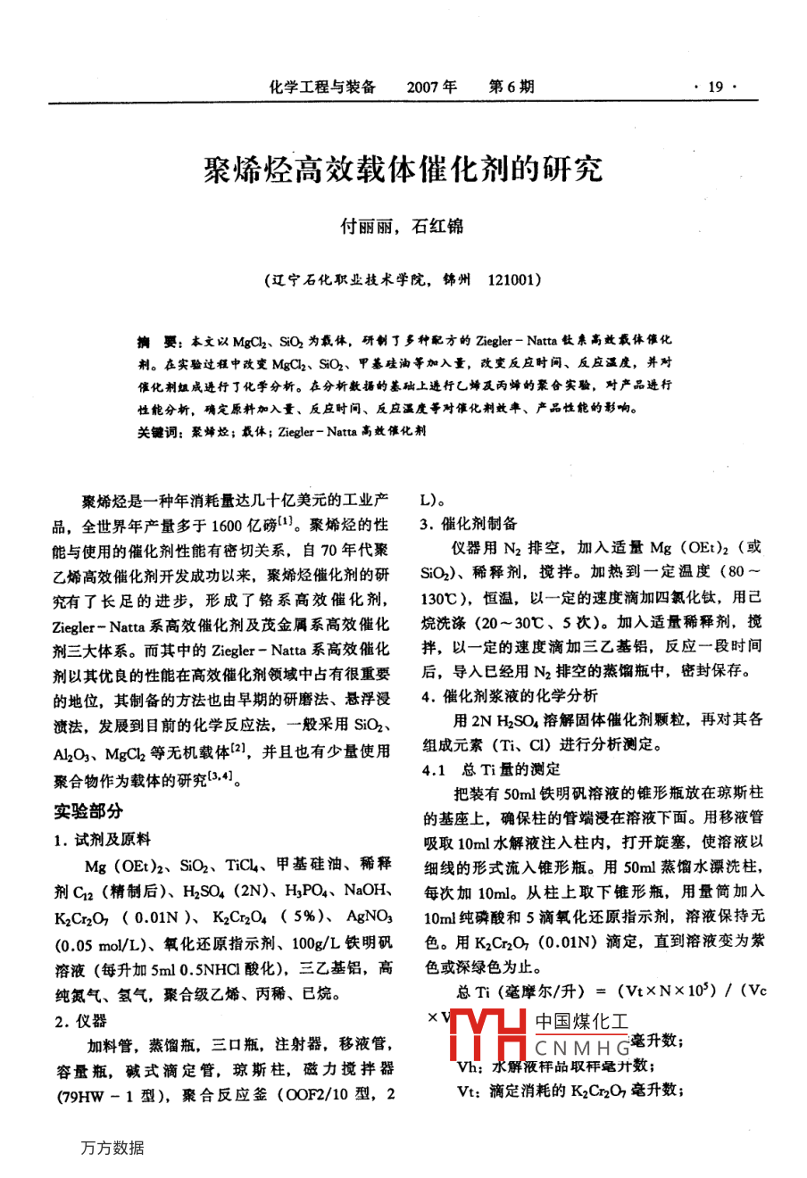 聚烯烴高效載體催化劑的研究