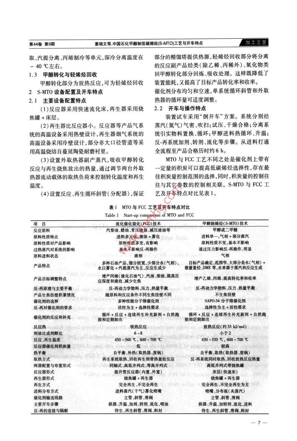 中國石化甲醇制低碳烯烴(S-MTO)工藝與開車特點