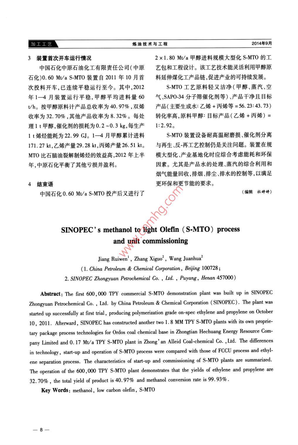 - 作者單位:中國石油化工集團公司,中國石化中原石油化工有限責任公司