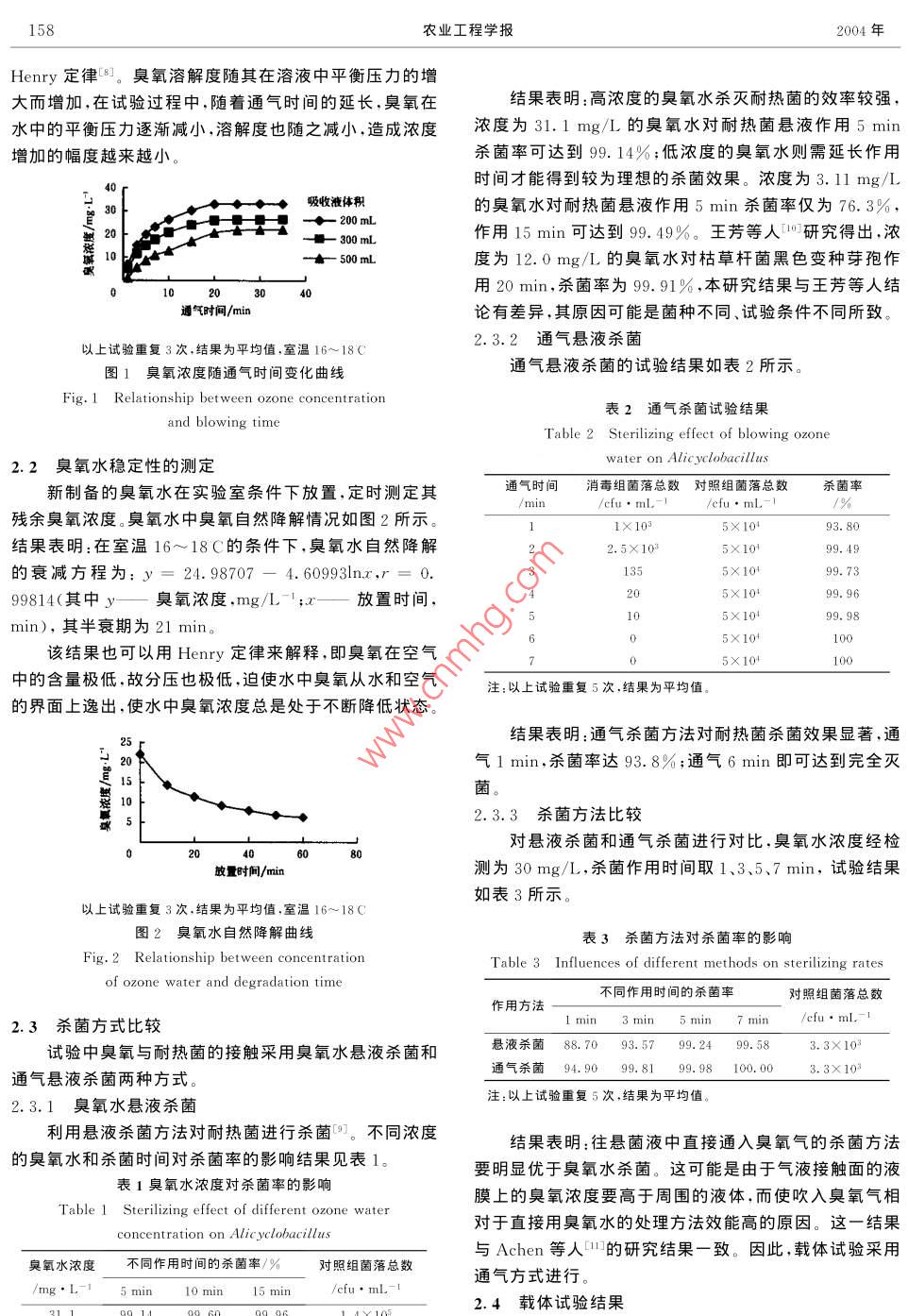 臭氧溶解特性及對耐熱菌非熱殺菌的研究