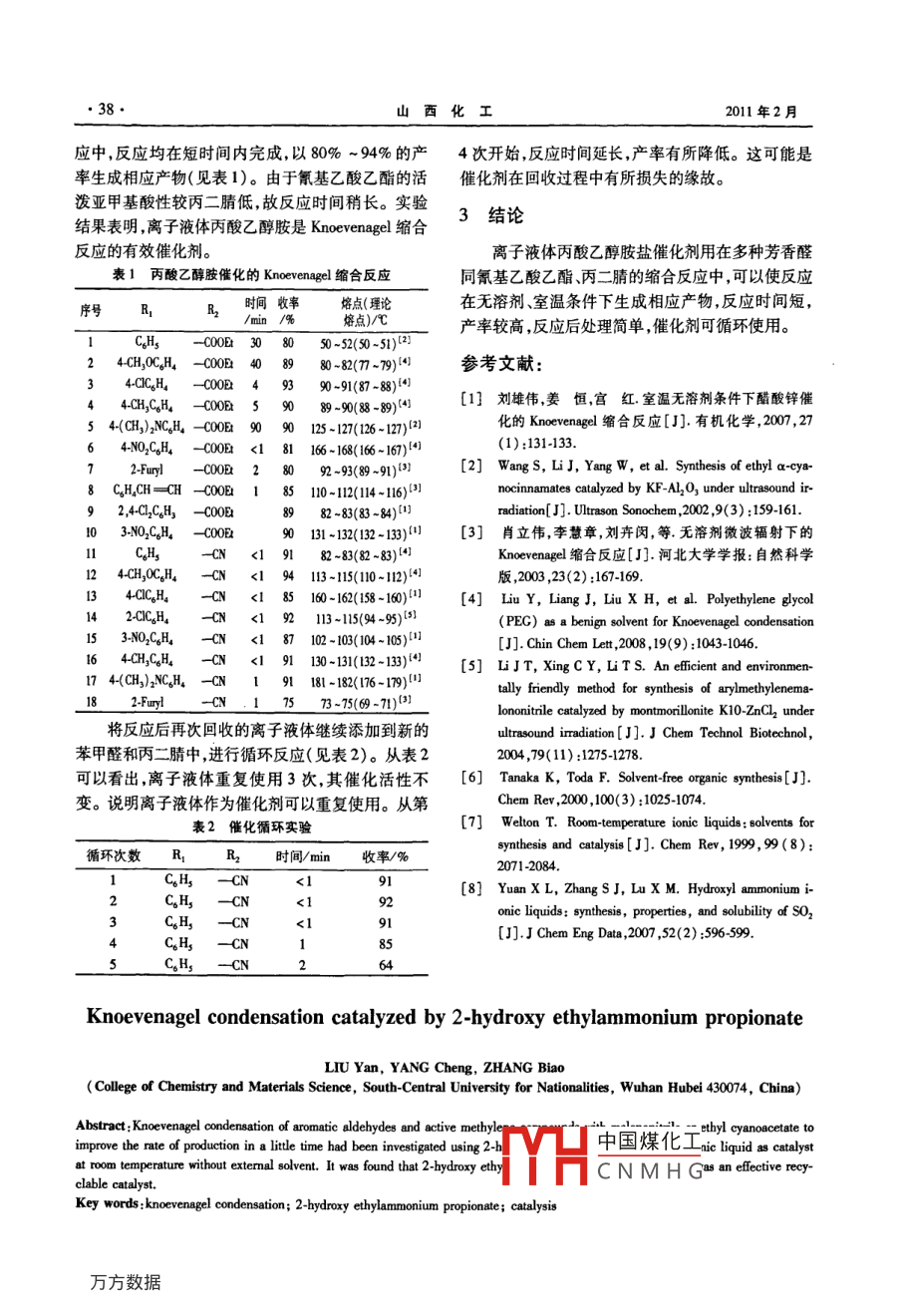 丙酸乙醇胺催化的Knoevenagel縮合反應(yīng)