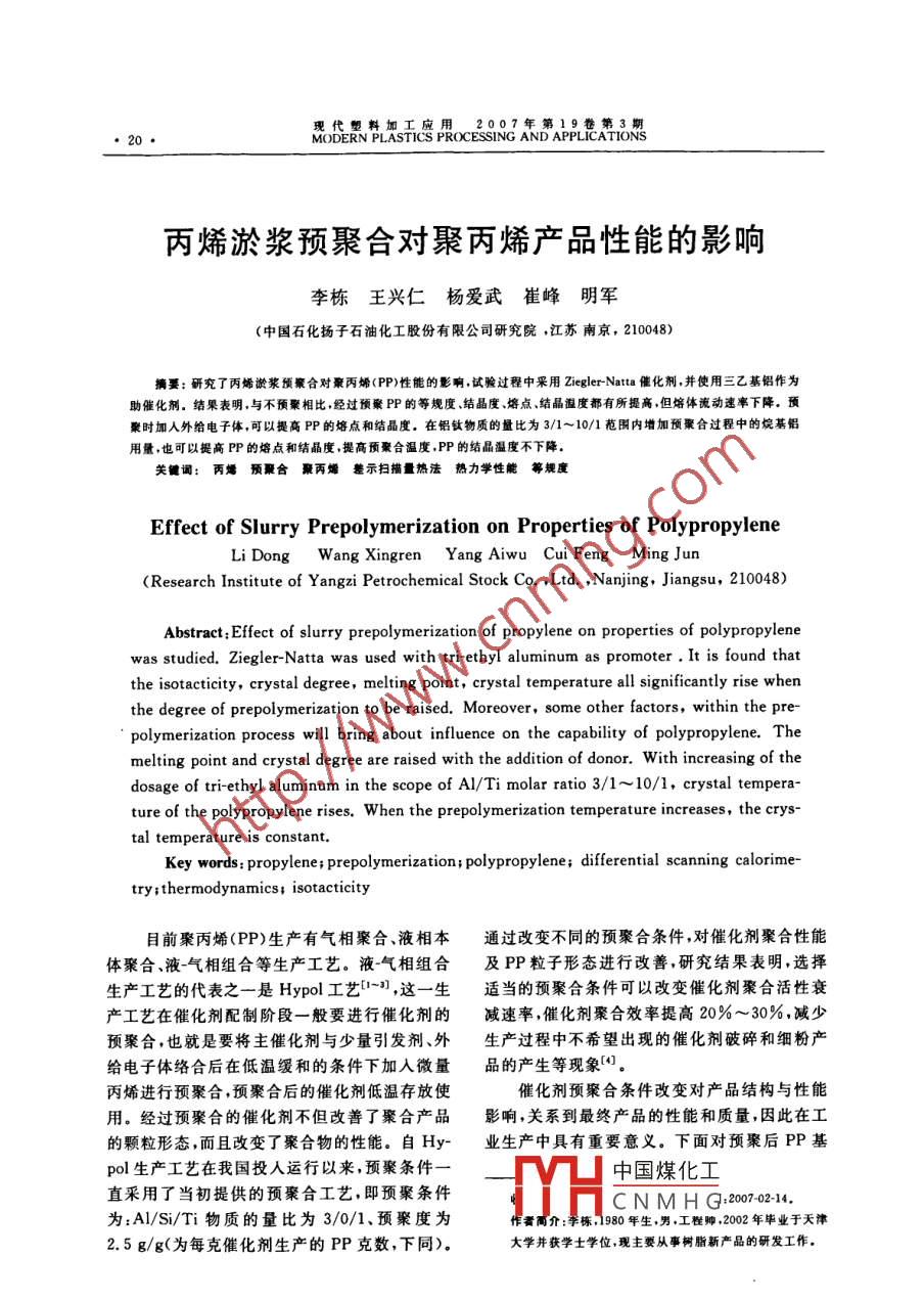 丙烯淤漿預(yù)聚合對(duì)聚丙烯產(chǎn)品性能的影響