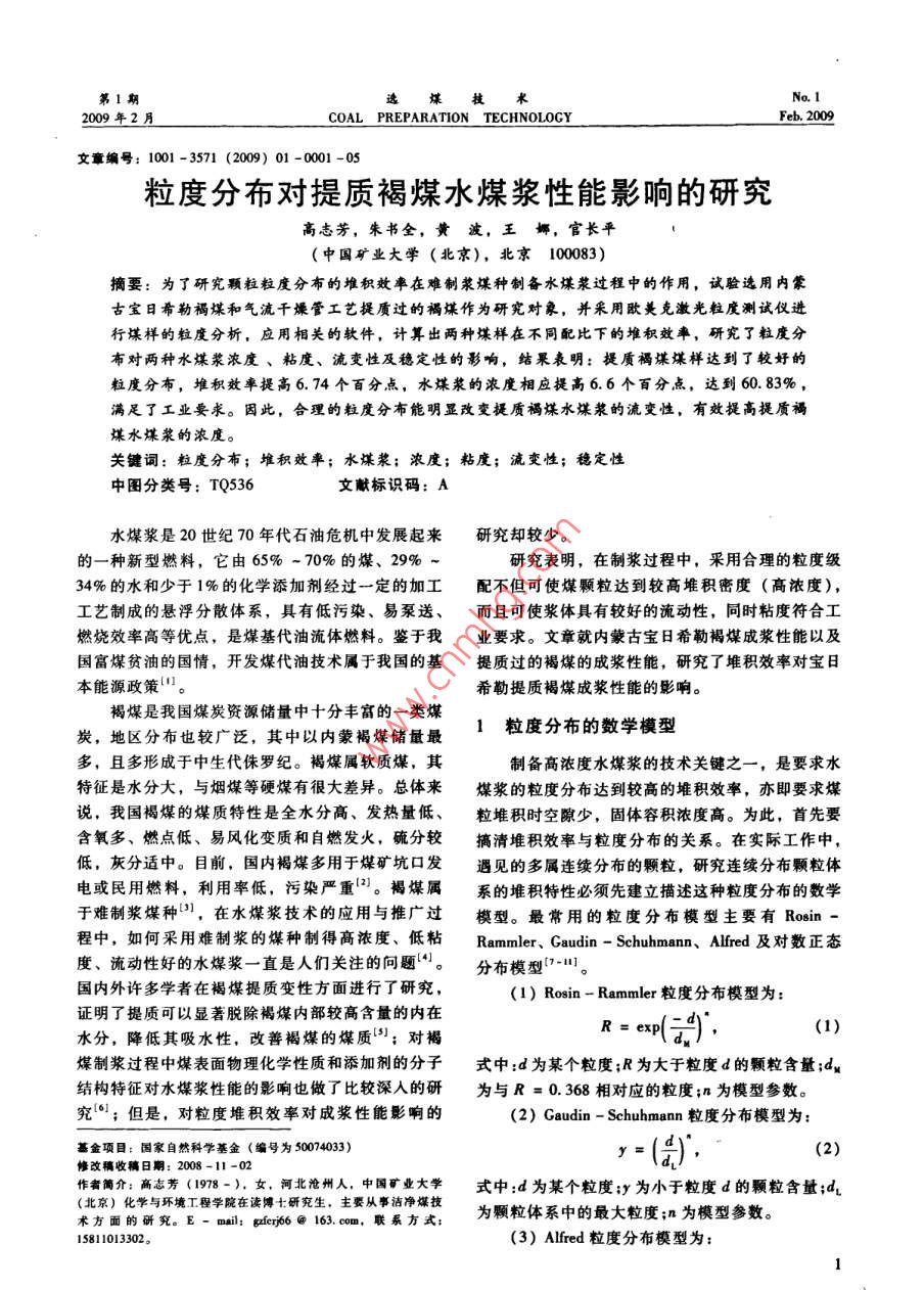 粒度分布對提質褐煤水煤漿性能影響的研究