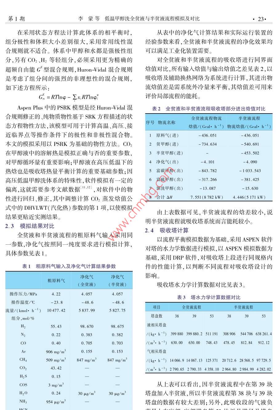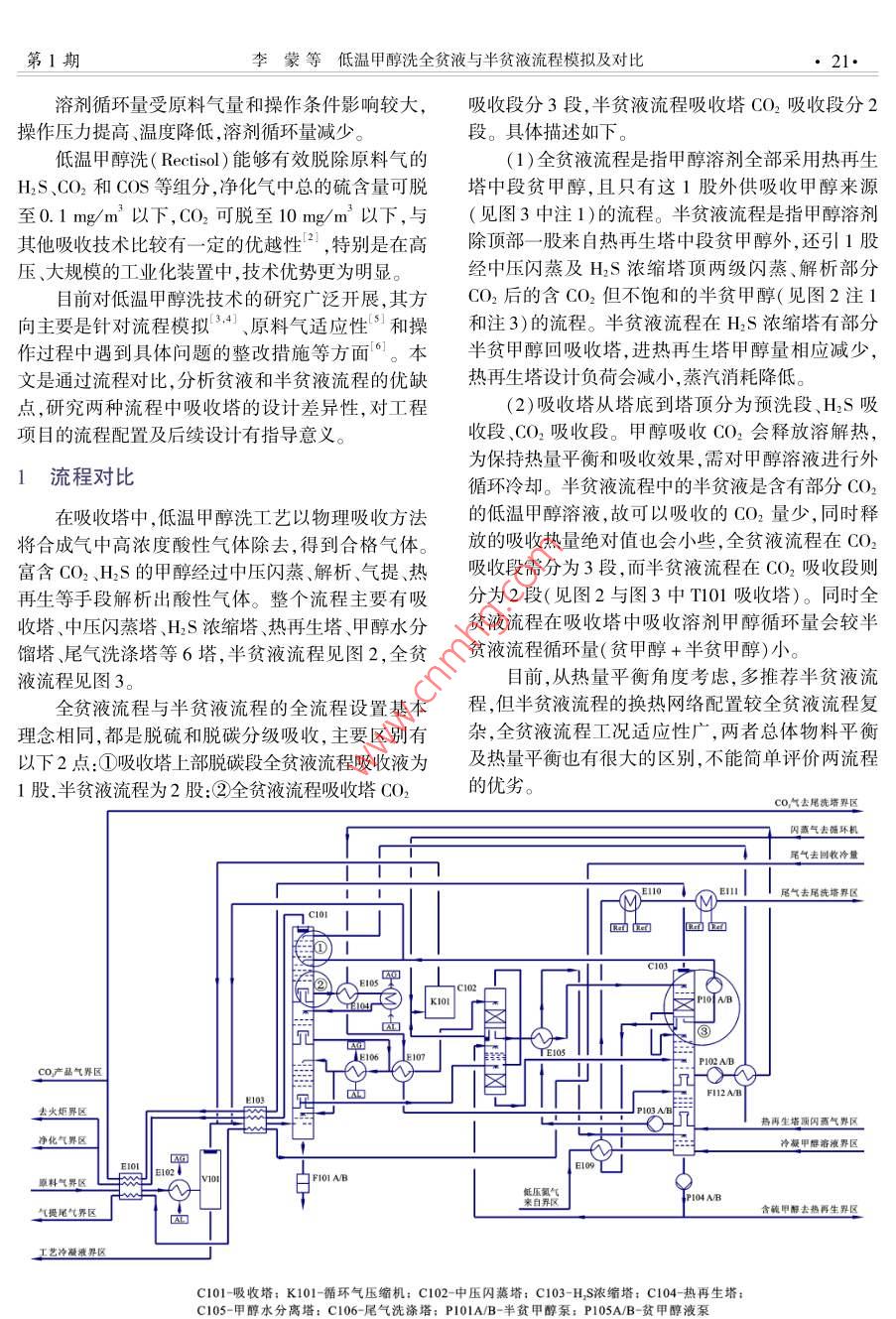 低溫甲醇洗全貧液與半貧液流程模擬及對(duì)比