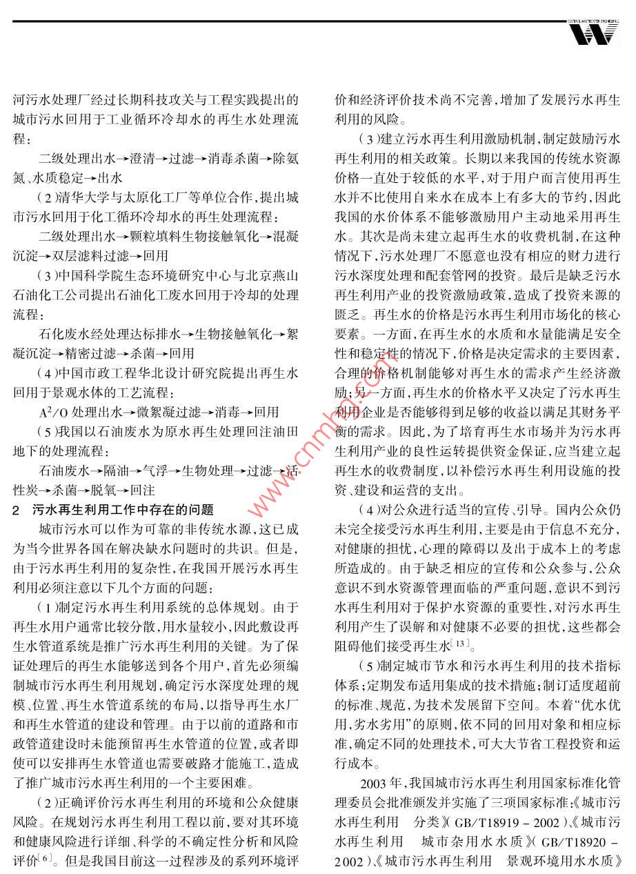 城市污水再生利用現(xiàn)狀分析 城市污水再生利用現(xiàn)狀分析