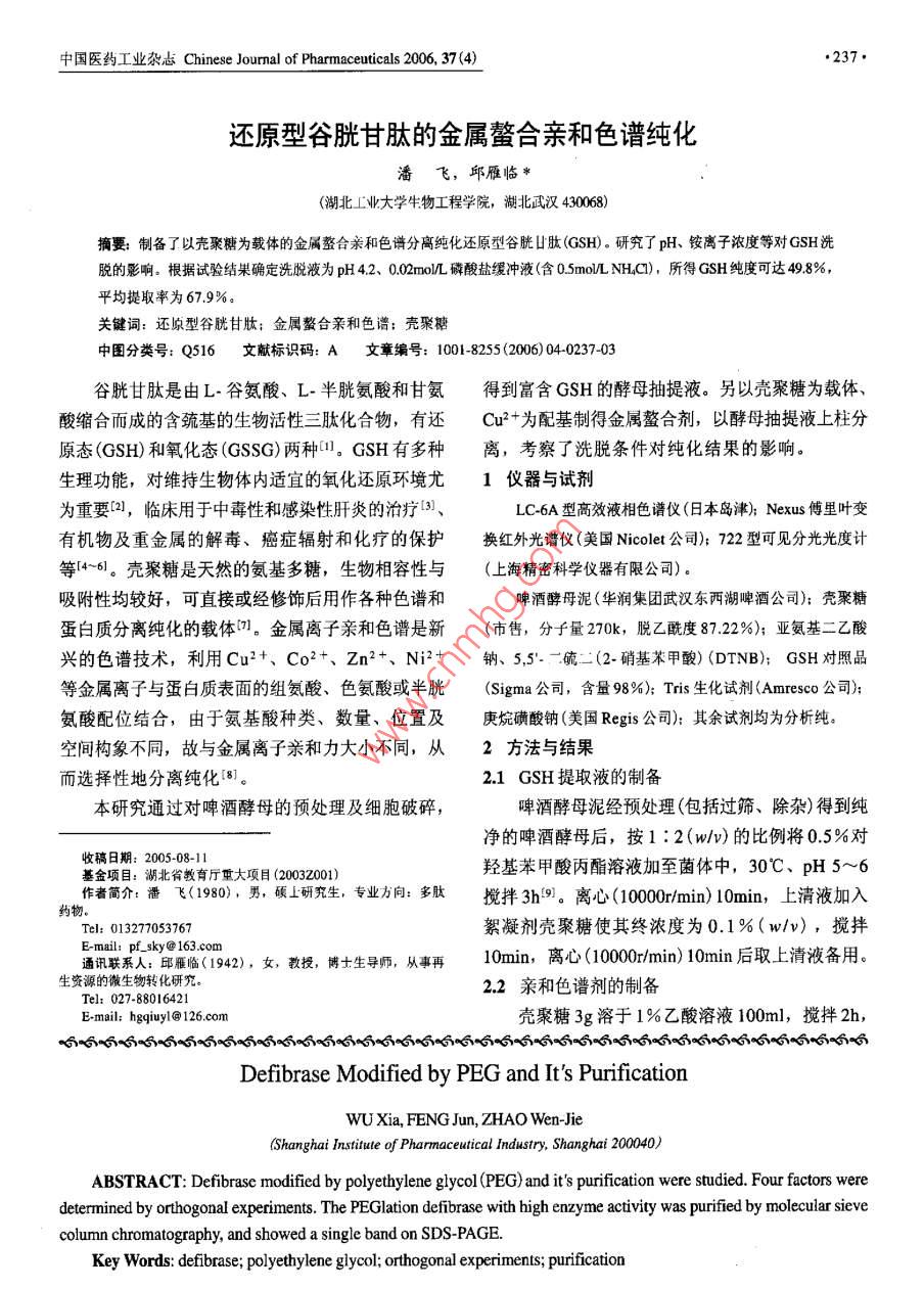 - 期刊名字:中國醫(yī)藥工業(yè)雜志