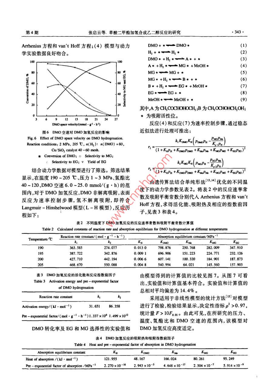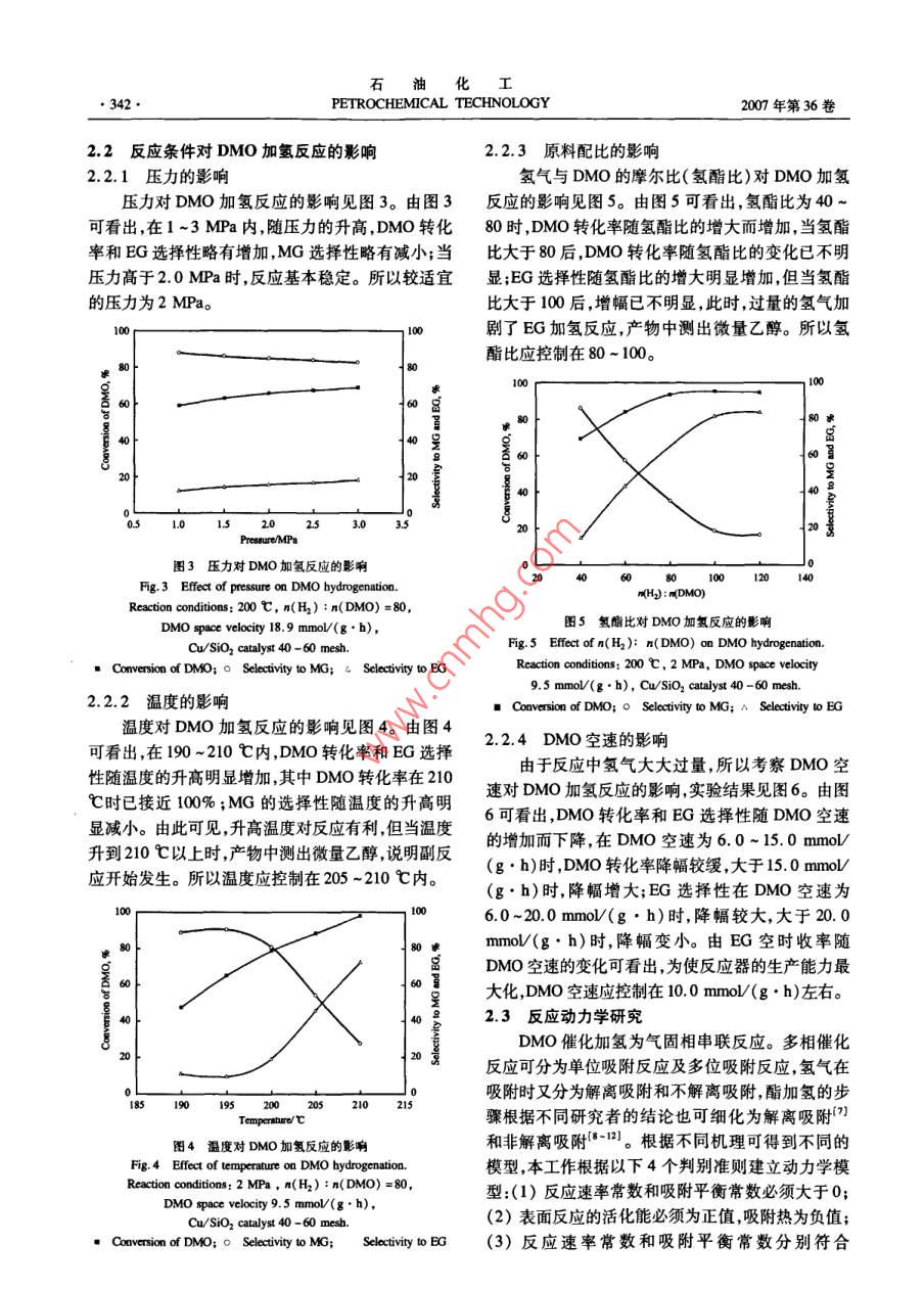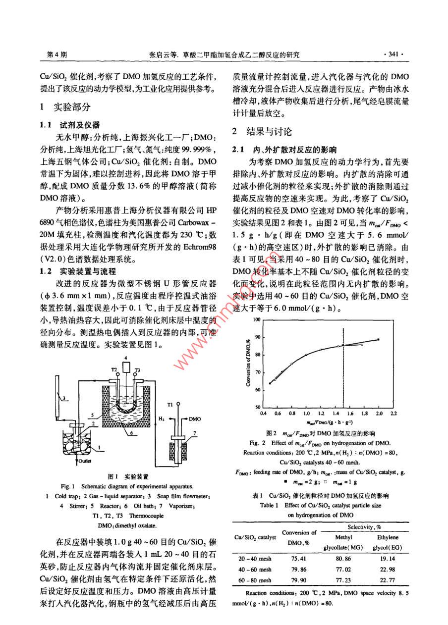 草酸二甲酯加氫合成乙二醇反應(yīng)的研究 草酸二甲酯加氫合成乙二醇反應(yīng)的研究