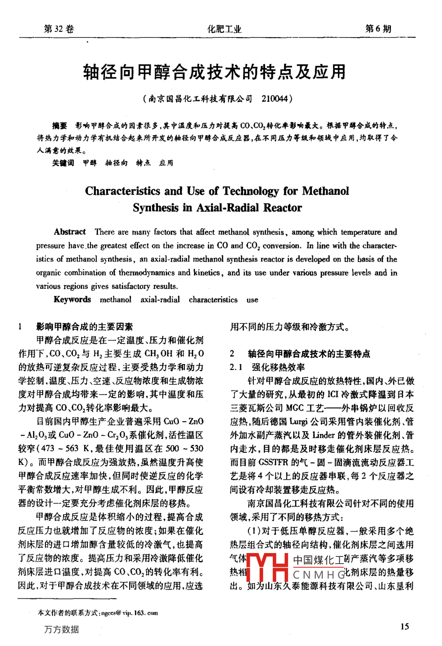 - 期刊名字:化肥工業(yè)