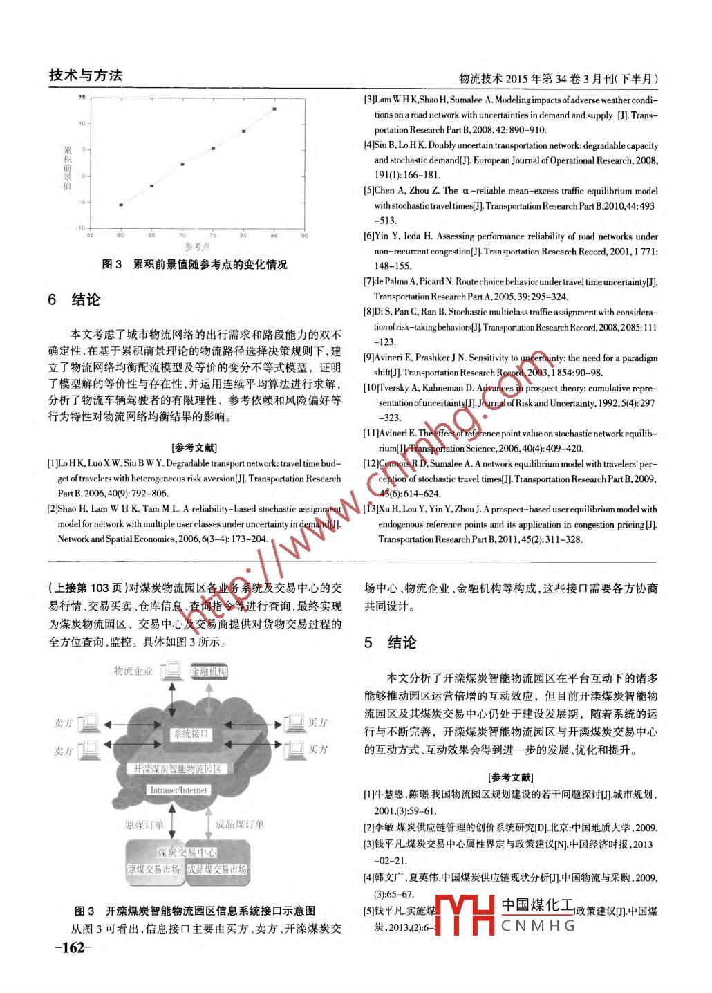 溫永平:開灤煤炭智能物流園區(qū)與煤炭交易中心互動(dòng)關(guān)系研究研究與探討do10396/jissn.1005 -152X.2015.03(2).025開灤煤炭智能物流園區(qū)與煤炭交易中心互動(dòng)關(guān)系研究溫永平(開灤集團(tuán)國(guó)際物流有限責(zé)任公司,河北唐山063000)[摘要]以開灤煤炭智能物流園區(qū)為例,研究煤炭智能物流園區(qū)與煤炭交易中心二者間的關(guān)系,得到煤炭智能物流園區(qū)與煤炭交易中心具有一一定的相似性或互補(bǔ)性.煤炭智能物流園區(qū)可通過與煤炭交易中心間的互動(dòng),能夠形成完整的、全鏈條的管理的結(jié)論[關(guān)鍵詞煤炭智能物流園區(qū);互動(dòng);煤炭交易中心[中圖分類號(hào)]F252.8;F426[文獻(xiàn)標(biāo)識(shí)碼]A[文獻(xiàn)編號(hào)1005- 152X(2015 )03(2)-0101-03Study on Interactive Relationship between Inelligent Logistics Park of Kailuan Group andCoal Transaction CenterWen Yongping(Kailuan Croup Itermational Logistices Co. Ld.. Tangshan 0630000 China)Abstract: In this paper, we took the itelligent logistics park of Kailuan Group as an example, studied the relationship between the in-their interaction, a complete and whole chain management could be established.Keywords: coal ieleligent logistis park; interaction; coal transaction center的互動(dòng)需滿足兩個(gè)必要的條件:必須要具有相似性或互補(bǔ)性,1引言并且要必須有可以實(shí)現(xiàn)的互動(dòng)接口。平臺(tái)的倍增運(yùn)營(yíng)隨平臺(tái)間的互動(dòng)程度的加深和互動(dòng)效應(yīng)的增加呈遞增趨勢(shì),開灤煤開灤煤礦交易中心集中建立了電子交易、金融服務(wù)、物流炭智能物流園區(qū)與其煤炭交易中心平臺(tái)二者之間滿足相似服務(wù)及信息服務(wù)等諸多- -體化的服務(wù)平臺(tái)。 同時(shí),該交易中心性 、互補(bǔ)性及可實(shí)現(xiàn)的互動(dòng)接口。的經(jīng)營(yíng)方式逐步由粗放型轉(zhuǎn)變?yōu)榧s型,進(jìn)而為煤炭的生產(chǎn)、2.1供應(yīng)鏈平 臺(tái)的相似性運(yùn)輸和銷售等--系列運(yùn)營(yíng)體系提供了增值服務(wù)。然而服務(wù)平開灤煤炭智能物流園區(qū)和其煤炭交易中心均屬于煤炭行臺(tái)的基礎(chǔ)取決于交易服務(wù),該服務(wù)由開灤煤炭交易中心提供,業(yè)的供應(yīng)鏈管理平臺(tái), 二者在平臺(tái)的構(gòu)成和平臺(tái)的生態(tài)系統(tǒng)在一定業(yè)務(wù)量上已經(jīng)得到了拓寬,比較有代表性的是神華電方面保持著高度的相似性。具體體現(xiàn)在:(1)二者均屬于產(chǎn)地子化招標(biāo)采購(gòu),最終使得諸多服務(wù)商經(jīng)相關(guān)約束規(guī)定參與到型煤 炭供應(yīng)鏈管理平臺(tái);(2)二者的運(yùn)營(yíng)平臺(tái)均與實(shí)體物流密該企業(yè)的平臺(tái)運(yùn)營(yíng)中去。目前開灤煤礦在物流資金、物流資源不可分;(3)二者的平臺(tái)生態(tài)系統(tǒng)均包含諸多相同要素,開灤服務(wù)及自檢服務(wù)等方面均對(duì)煤炭供應(yīng)鏈虛擬價(jià)值流的管理起煤 炭智能物流園區(qū)與其相關(guān)服務(wù)商之間的合作,可給客戶提到了非常重要的作用。鑒于此,本文重點(diǎn)對(duì)煤炭智能物流園區(qū)供煤炭質(zhì)檢、物流運(yùn)輸車輛信息及貨源信息等諸多信息;(4)與煤炭交易中心的互動(dòng)進(jìn)行研究。二者為了更妥善解決好煤炭供應(yīng)的問題,在運(yùn)營(yíng)理念和發(fā)展思路方面也保持著高度的相似性。2開灤煤炭 智能物流園區(qū)與煤炭交易中心的2.2 交易平臺(tái)的相互依賴互動(dòng)條件開灤煤炭智能物流園區(qū)與其煤炭交易中心平臺(tái)保持著高度的相互性和依賴性。具體體現(xiàn)在;(1)開灤煤炭智能物流園積極推動(dòng)平臺(tái)為企業(yè)發(fā)展提供良好的契機(jī),而平臺(tái)間區(qū)屬于實(shí)物流管理平臺(tái),而其煤炭交易中心則屬于虛擬價(jià)值[收稿日期]2015-01-29中國(guó)煤化工,[作者簡(jiǎn)介]溫永平( 1974-).男.山西大同人,燕山大學(xué)經(jīng)管學(xué)院在讀碩士研究生,開灤國(guó)方向:營(yíng)銷與物流。MYHCNMH G-101-.技術(shù)與方法物流技術(shù)2015年第34卷3月刊(下半月)15[3]Lam W HK,ShaoH,Sumalee A. Modeling impacts of adverse weathercondi-tions on a road network with uncertainties in demand and supply [J]. Trans-10portation Research Part B, 2008, 42: 890-910.[4)Siu B, LoH K. Doubly uncertain transportation network: degradable capacityand stochastie demand[]. European Joumnal of Operational Research, 2008,191(1): 166-181.直[5IChen A, Zhou Z. The a -reliable mean- excess taffi equilibrum modelwith stochastic travel times[J] Transportation Research Part B,2010,44:493-513.[6]Yin Y, Ieda H. Assessing performance reliability of road networks undernon-recurrent congestion[J]. Transportation Research Record, 2001, 1771:圖3累積前景值隨參考點(diǎn)的變化情況148-155.[7]de Palma A, Picard N. Route choice behavior undertravel time uncertainty[J].6結(jié)論Transportation Research Part A, 2005, 39:295- -324.[8]DiS, Pan C, Ran B. Stochastice muliclass ralf asignment with considera-tionofrisk-takingbehaviors[J]. Transportation Research Record, 2008,2085:111本文考慮了城市物流網(wǎng)絡(luò)的出行需求和路段能力的雙不確定性.在基于累積前景理論的物流路徑選擇決策規(guī)則下,建[9]Avineri E, Prashker J N. Sensitivity to uncertainty: the need for a paradigm立了物流網(wǎng)絡(luò)均衡配流模型及等價(jià)的變分不等式模型,證明shif[J]. Transportation Resea