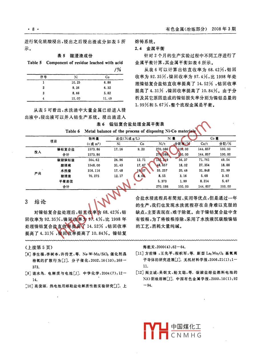 - 期刊名字:有色金屬(冶煉部分)