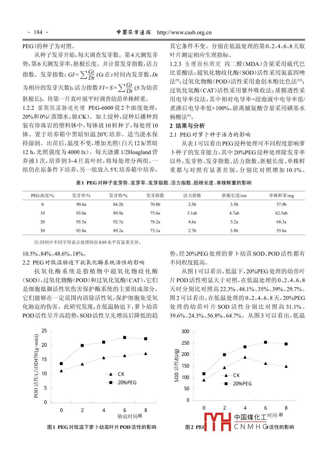 聚乙二醇對蘿卜種子活力與幼苗抗冷性的影響