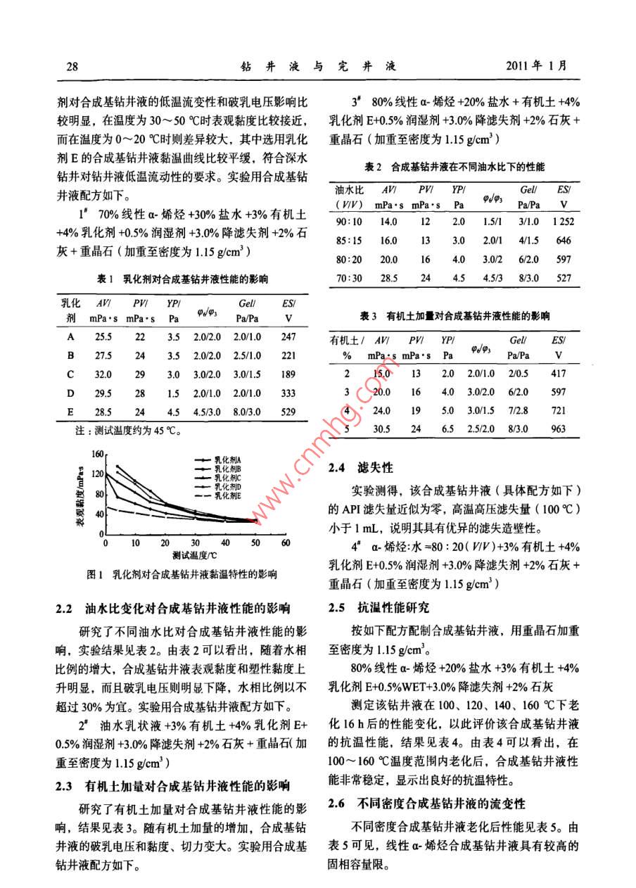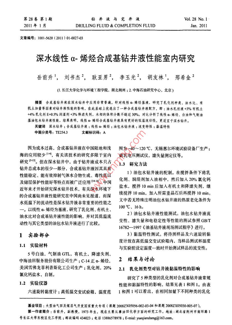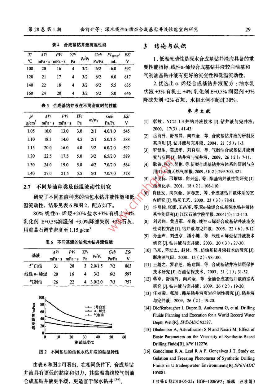 深水線性α-烯烴合成基鉆井液性能室內(nèi)研究