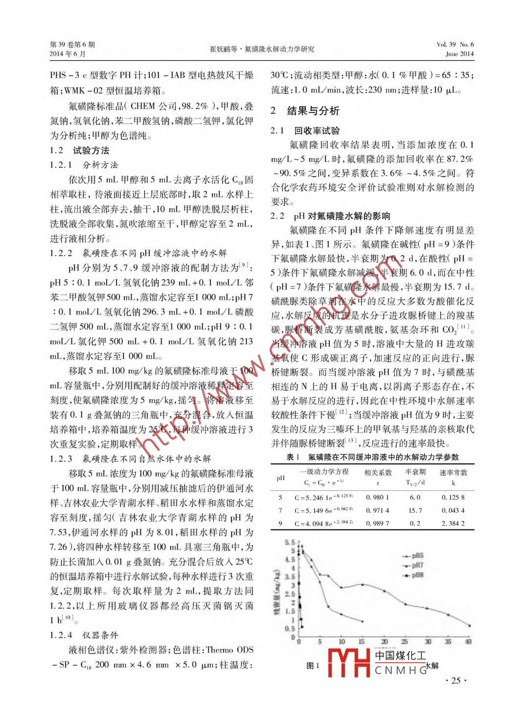 氟磺隆水解動力學研究