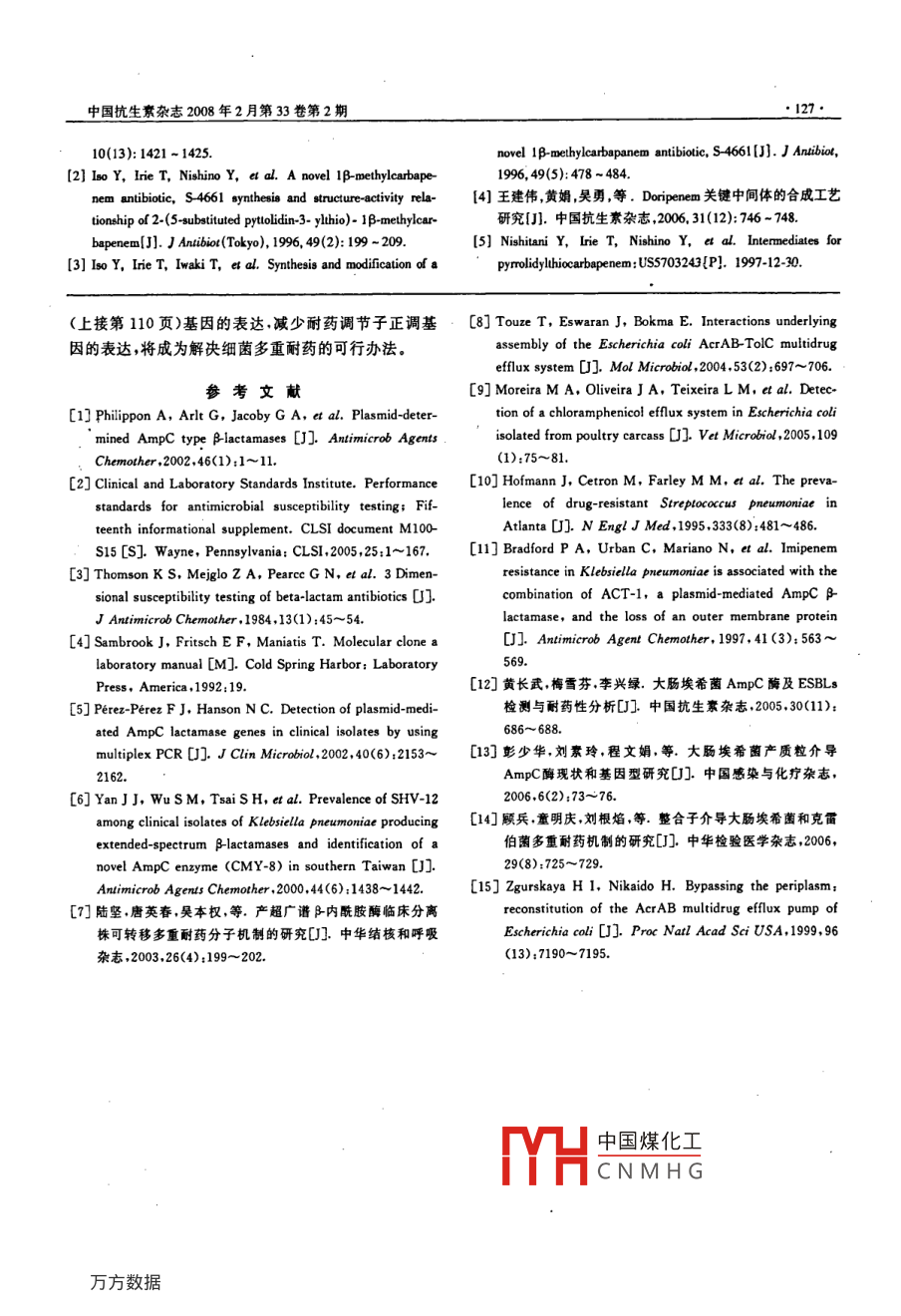 - 期刊名字:中國抗生素雜志