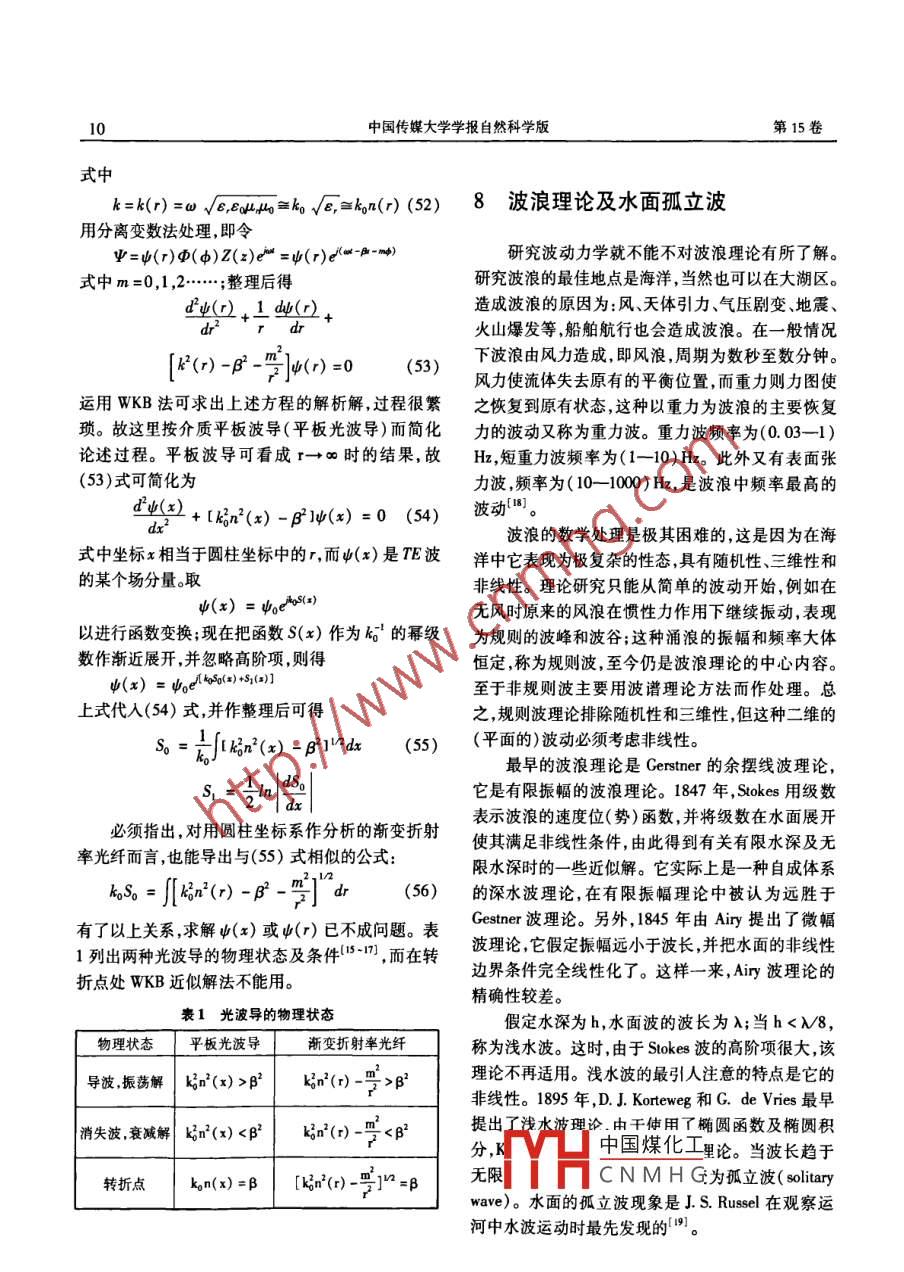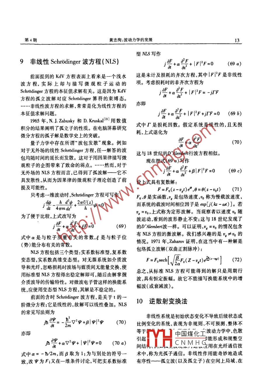 第15卷第4期中國傳媒大學(xué)學(xué)報自然科學(xué)版20084F 12 A JOURNAL OF COMMUNICATION UNIVERSITY OF CHINA(SCIENCE AND TECHNOLOGY)波動力學(xué)的發(fā)展黃志洵(中國傳媒大學(xué)信息工程學(xué)院,北京100024)摘要:本文是對波動力學(xué)(WM)進展的概迷。波動力學(xué)的發(fā)展源遠流長,最旱發(fā)端于最小作用原理,該原理可以說是“眾理之母”。對波動力學(xué)貢獻最大者是物理學(xué)家 Erwin Schrodinger,其次是 Louis de broglie;前者提出的schrodinger方程(SE)不僅用于處理微觀粒子的運動,而且早已用來分析一些宏觀科學(xué)技術(shù)問題。 Schrodinger本人沒有來得及在有生之年研究非線性 Schrodinger方程(NSE,亦稱NLS);而 de broglie卻曾致力于非線性波動力學(xué)(NLWM)的研究,并將其與孤立波聯(lián)系起來。當(dāng)前大量波動力學(xué)研究工作涉及數(shù)學(xué)上的非線性微分方程對其物理學(xué)意義反而有忽視的傾向。對電磁波的研究工作仍是波科學(xué)的重要方面,其基本理論尚待澄清之處甚多。波動力學(xué)的發(fā)展表明,經(jīng)典電磁波方程應(yīng)與量子力學(xué)波方程聯(lián)系起來研究,孤立地討論經(jīng)典的場與波的時代旱已結(jié)束。關(guān)鍵詞:波動力學(xué);波方程; Schrodinger方程;孤立波中圖分類號:TNo11文獻標識碼:A文章編號:1673-4793(2008)04-0001-16Advances in Wave Mechanics ResearchHUANG Zhi-XunCommunication University of China, Beijing 100024)Abstract: This paper get a general survey of advances in Wave Mechanics. The development of WaveMechanics goes back to ancient times. The principle of least action is the source of Wave Mechanics,soit is the mother of several principles. Erwin Schrodinger was the greatest contribution scientist of WaveMechanics, secondary was Louis de broglie. The Schrodinger equation not only can treat the movement ofmicroscopic particles, but also can analysed some of the macroscopic scientific problems. There's no timefor Schrodinger to study the non-linear Schrodinger equation NIS), but de broglie devoted oneself tothe study of nonlinear Wave Mechanics, and established contact with the solitary waves. At present, themost research works involve the nonlinear differential equations in mathematics, but ignore the physicalmeaning. In the sciences of waves, the study of electro-magnetic waves are important field, many problems demand clarification. From the Wave Mechanics point of view, we must integrate the classic electromagnetic wave equation with the Quantum Mechanics wave eqution, the isolated discussion age of classic fields and waves was extremely early ended.Key words: wave mechanics: wave equations; Schrodinger equation; solitary waves中國煤化工CNMHG收稿日期:2008-06-16作者簡介:黃志洵(1936-),男(漢族),北京市人,中國傳媒大學(xué)教授、博土生導(dǎo)師中國科學(xué)院電子學(xué)研究所客座研究員。中國傳媒大學(xué)學(xué)報自然科學(xué)版第15卷Schrodinger在講演中論述了軌道概念的無效性;指1引言出新量子力學(xué)的特點—邏輯上變“不是……就是…”為“既是……又是”;人們不再可以講何者真波動是自然界普遍存在的現(xiàn)象。人類早期觀察正發(fā)生,只能說在某一情況下將觀察到什么。另外較多的波動是水面波以及由弦或膜的振動導(dǎo)致的在不同條件下可能只用波動理論或只用粒子理論來機械波這些都具有可視的形態(tài)。田野里的麥浪也解決問題。是波。后來逐漸認識了一些不可目視的波動,如聲波、電磁波、光波。20世紀的研究深入到微觀層次之后,發(fā)現(xiàn)了物質(zhì)波(如電子運動伴隨的波動),又提出了幾率波。波動的參數(shù)包括波長、頻率、振幅、相位、速度、能量、動量等。雖然嚴格的線性波很少,但許多波呈現(xiàn)出線性。盡管對波動的研究開始得很早,但至今仍常令人陷入迷茫。例如關(guān)于電磁波的屬性;關(guān)于微觀粒子的波粒二象性;關(guān)于波函數(shù)的本質(zhì);關(guān)于光的本性,等等;至今仍是眾說紛紜。本文是從波方程圖1光線穿過大氣層到達地面( wave equations)入手而論述的,因為描寫波動的函所謂最小作用原理是 Fermat科學(xué)思想的基礎(chǔ)數(shù)一定含有時間變量,并以方程的形式勾勒出波的最早是古希臘學(xué)者 Heron(約公元3世紀),在光學(xué)時空關(guān)系。從本文內(nèi)容可知,就力學(xué)、聲學(xué)光學(xué)電方面他證明當(dāng)一條光線被反射時入射角等于反射磁學(xué)而言,波動遵循著大體上相同的規(guī)律。角,并且光線此時所走是最短路徑。公元6世紀時波動力學(xué)的英文寫法是 wave mechanic,它的主的學(xué)者 Olympiodoru則在其著作《反射光學(xué)》中說:要創(chuàng)立者是 Erwin Schrodinger他的工作承前啟后,“自然界不做任何多余的事或不必需的工作”。法順乎自然溝通微觀與宏觀因此成為本文的核心內(nèi)國數(shù)學(xué)家P.Fem(1601-165)曾提出最小光程容。本文原為給在讀博士生的講稿現(xiàn)整理成文,以原理,在1657年和162年他論證說:“光線總是以饗讀者。費時最少的路徑行進”。假定光由真空射向非真空媒質(zhì),后者的折射率n=c/v,v是光在該媒質(zhì)中的速2波動力學(xué)的基礎(chǔ)度。如媒質(zhì)為非均勻的,則n=n(x,y,z),v=v(x,y,z)。那么當(dāng)光沿曲線x(r),y(r),z(r)由第1點193年 E. Schrodinger的Nobe獲獎演說,題目先進到第2點時,需要的時間為便是“波動力學(xué)的基本思想”。他首先通俗地說明ds光線從太空向地球表面大氣層的入射(圖1),