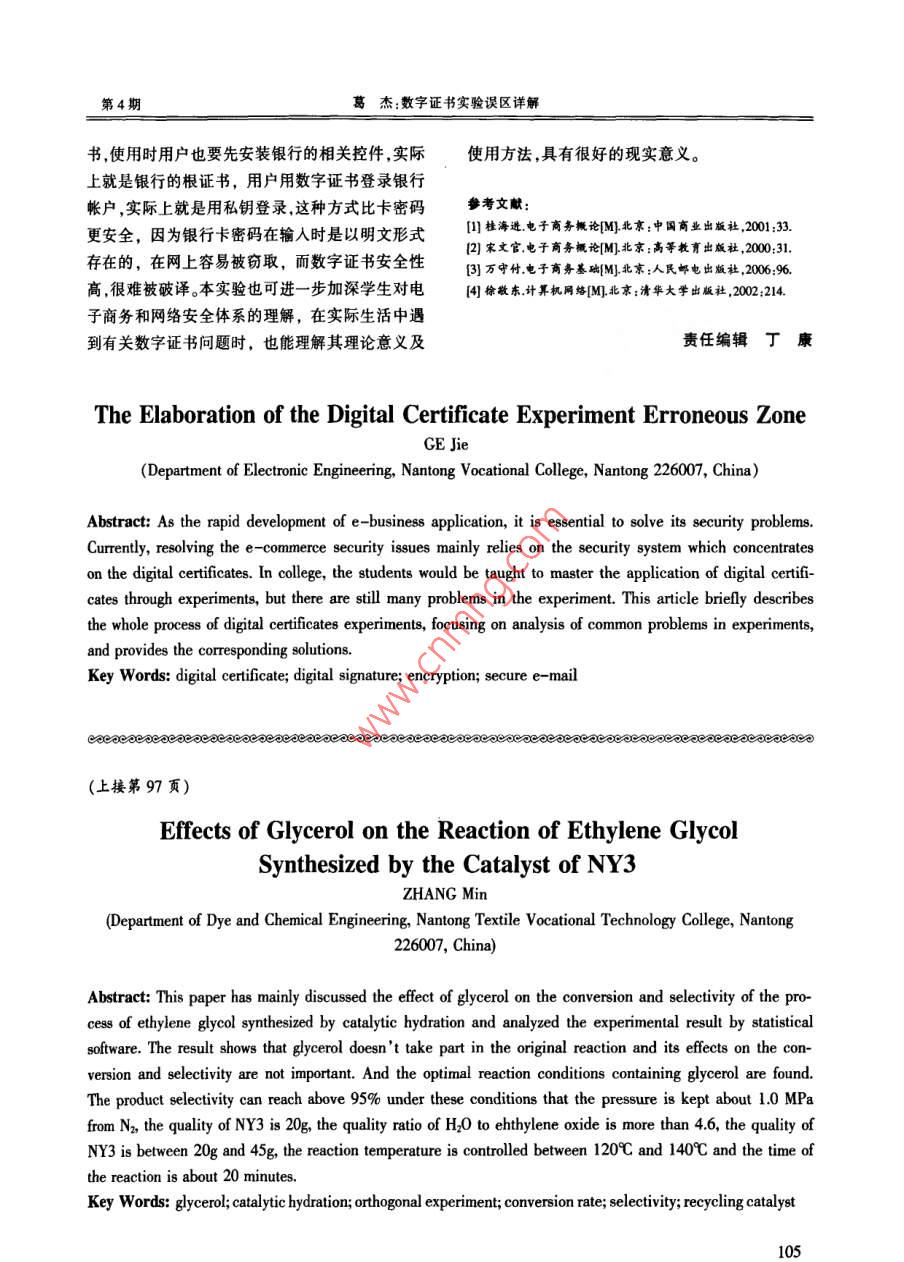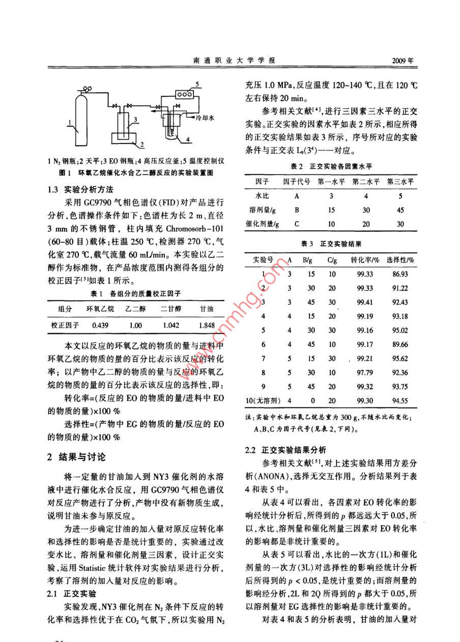 甘油對(duì)NY3催化合成乙二醇反應(yīng)的影響