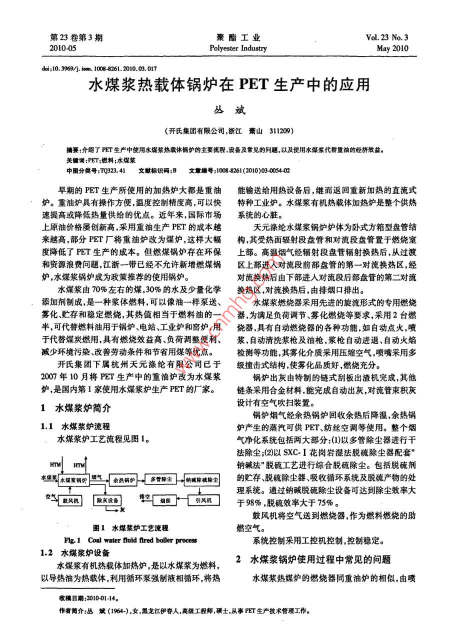 水煤漿熱載體鍋爐在PET生產(chǎn)中的應(yīng)用