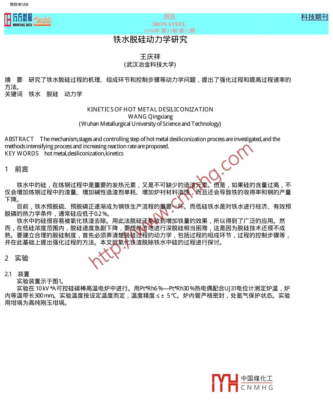 - 期刊名字:鋼鐵