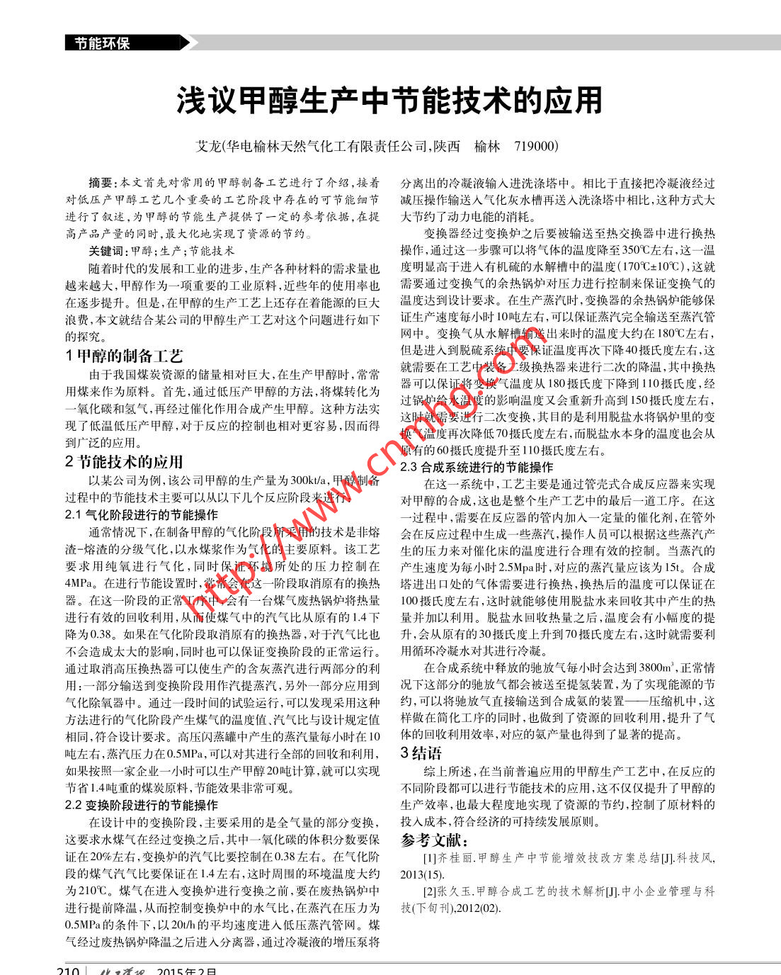 淺議甲醇生產(chǎn)中節(jié)能技術的應用