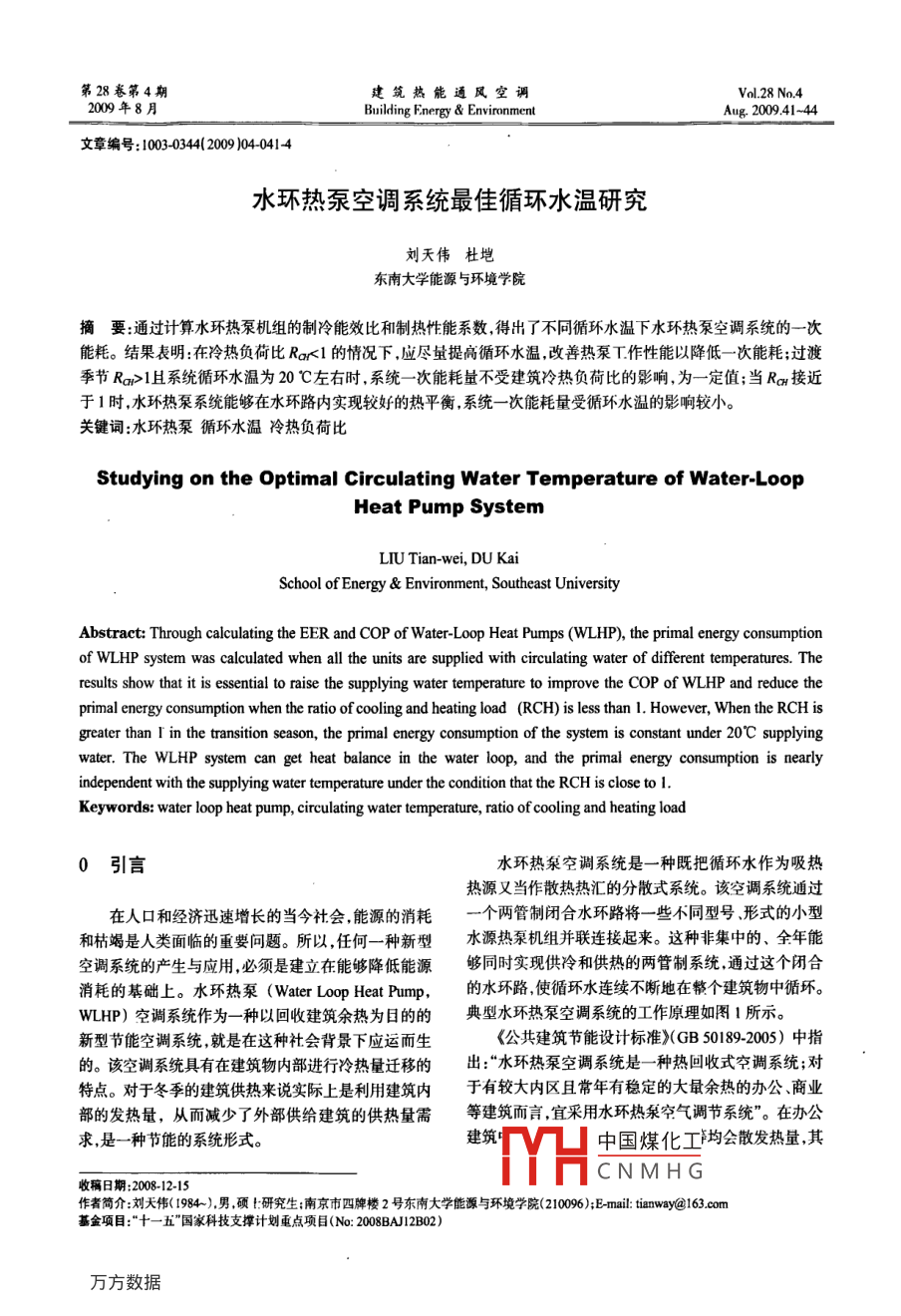 水環(huán)熱泵空調(diào)系統(tǒng)最佳循環(huán)水溫研究