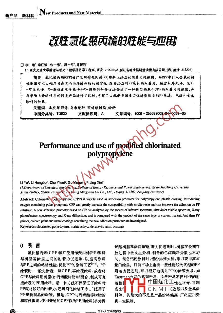 改性氯化聚丙烯的性能與應(yīng)用