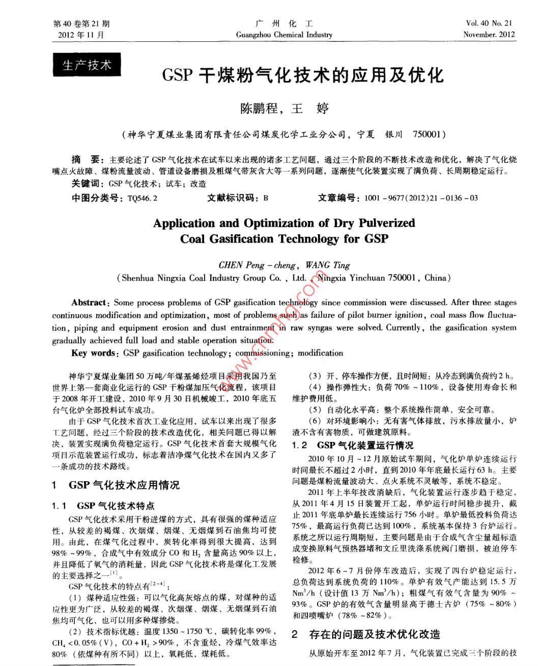 GSP干煤粉氣化技術(shù)的應(yīng)用及優(yōu)化