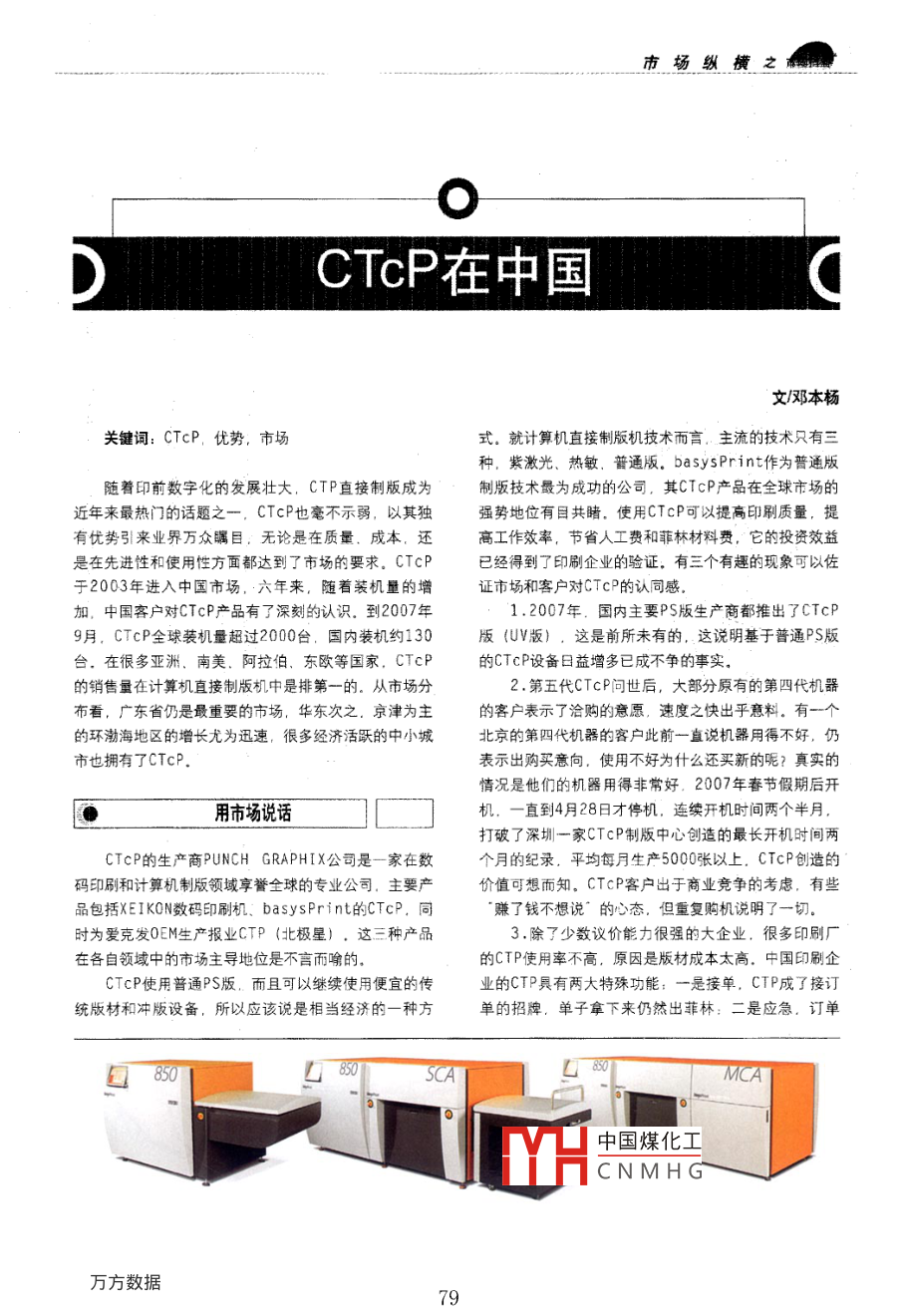 市場縱櫝之CTcP在中國文鄧本楊關(guān)鍵詞:CTcP,優(yōu)勢,市場式。就計(jì)算機(jī)直接制版機(jī)技術(shù)而言,主流的技術(shù)只有三種,紫激光、熱敏,普通版。 basys print作為普通版隨著印前數(shù)字化的發(fā)展壯大,CTP直接制版成為制版技術(shù)最為成功的公司,其CTcP產(chǎn)品在全球市場的近年來最熱門的話題之一,CTcP也毫不示弱,以其獨(dú)強(qiáng)勢地位有目共睹.使用CTcP可以提高印刷質(zhì)量,提有優(yōu)勢引來業(yè)界萬眾矚目,無論是在質(zhì)量.成本,還高工作效率,節(jié)省人工費(fèi)和菲林材料費(fèi),它的投資效益是在先進(jìn)性和使用性方面都達(dá)到了市場的要求,CTcP已經(jīng)得到了印刷企業(yè)的驗(yàn)證,有三個(gè)有趣的現(xiàn)象可以佐于2003年進(jìn)入中國市場,六年來,隨著裝機(jī)量的增證市場和客戶對CTcP的認(rèn)同感加,中國客戶對CTcP產(chǎn)品有了深刻的認(rèn)識,到2007年1.2007年,國內(nèi)主要P版生產(chǎn)商都推出了CTcP9月,CTcP全球裝機(jī)量超過2000臺(tái),國內(nèi)裝機(jī)約130UV版),這是前所未有的,這說明基于普通PS版臺(tái),在很多亞洲、南美,阿拉伯、東歐等國家.CTcPcP設(shè)備日益增多已成不爭的事實(shí)的銷售量在計(jì)算機(jī)直接制版機(jī)中是排第一的。從市場分2.第五代CTcP問世后,大部分原有的第四代機(jī)器布看,廣東省仍是最重要的市場,華東次之.京津?yàn)橹鞯目蛻舯硎玖饲①彽囊庠?速度之快出乎意料。有一個(gè)的環(huán)渤海地區(qū)的增長尤為迅速,很多經(jīng)濟(jì)活躍的中小城北京的第四代機(jī)器的客戶此前一直說機(jī)器用得不好,仍市也擁有了CTcP表示出購買意向,使用不好為什么還買新的呢?真實(shí)的況是他們的機(jī)器用得非常好.2007年春節(jié)假期后開用市場說話[機(jī)一直到4月28日才停機(jī)連續(xù)開機(jī)時(shí)間兩個(gè)半月打破了深圳一家CTcP制版中心創(chuàng)造的最長開機(jī)時(shí)間兩CTcP的生產(chǎn)商 PUNCH GRAPHIX公司是一家在數(shù)月的紀(jì)錄.平均每月生產(chǎn)5000張以上.CTcP創(chuàng)造的碼印刷和計(jì)算機(jī)制版領(lǐng)域享譽(yù)全球的專業(yè)公司,主要產(chǎn)價(jià)值可想而知。CTcP客戶出于商業(yè)競爭的考慮,有些品包括XEIK0N數(shù)碼印刷機(jī)、 basysprint的CTcP,同賺了錢不想說”的心態(tài),但重復(fù)購機(jī)說明了一切。時(shí)為愛克發(fā)0EN生產(chǎn)報(bào)業(yè)CTP(北極星),這三種產(chǎn)品3.除了少數(shù)議價(jià)能力很強(qiáng)的大企業(yè),很多印刷廠在各自領(lǐng)域中的市場主導(dǎo)地位是不言而喻的的CTP使用率不高,原因是版材成本太高.中國印刷企CTcP使用普通PS版,而且可以繼續(xù)使用便宜的傳業(yè)的CTP具有兩大特殊功能:一是接單,CTP成了接訂統(tǒng)版材和沖版設(shè)備,所以應(yīng)該說是相當(dāng)經(jīng)濟(jì)的一種方單的招牌,單子拿下來仍然出菲林:二是應(yīng)急.訂單乙中國煤化工CNMH太多,菲林應(yīng)付不過來時(shí)才用一用CTP。而CTcP正相比上,都是中國客戶最佳的選擇反,制的版越多.省的錢越多,是使用率最高的設(shè)備第五代CTcP廣為用戶青睞●精益求精不斷進(jìn)取第五代CcP在 Drupa2008展會(huì)上引起了巨大的德國 basysprin公司從20年前生產(chǎn)第一臺(tái)CTcP反響.參展人士均給予了高度的評價(jià).生產(chǎn)商預(yù)期在展到現(xiàn)在,第五代機(jī)器已經(jīng)面世,第五代機(jī)器標(biāo)志著普通會(huì)期間完成訂單30臺(tái),實(shí)際完成訂單37臺(tái),其中,中版計(jì)算機(jī)直接制版技術(shù)發(fā)展到了一個(gè)新的階段。它融匯國客戶簽約11臺(tái)。第五代CTcP轟動(dòng) arupa,是因?yàn)闃I(yè)了第四代機(jī)器的設(shè)計(jì)精華,運(yùn)動(dòng)和曝光成像系統(tǒng)已經(jīng)非看到了CTcP在新興市場的美好前景.中國印前設(shè)備常成熟.在若干年內(nèi)應(yīng)該不會(huì)再有如此重大的變化市場的格局也將變化1.光源由U燈管改為激光二極管模塊,分為一至永洪集團(tuán)主要業(yè)務(wù)是商業(yè)和包裝印刷,大部分印四組模塊。光源模塊數(shù)越多.曝光速度越快,產(chǎn)能也刷汀單來自國外,制版量很大,品質(zhì)要求非常高,選就相應(yīng)地提高了。800系列對開機(jī)型印刷速度達(dá)26張CTcP設(shè)備.既滿足了產(chǎn)品質(zhì)量的要求,又可以采用價(jià)/時(shí),400系列四開機(jī)型34張/時(shí),全自動(dòng)機(jī)型可達(dá)60格低廉的普通PS版、加之設(shè)備系統(tǒng)穩(wěn)定,維護(hù)操作簡張/時(shí)單等優(yōu)點(diǎn),因此非常話合他們的要求,永洪集團(tuán)一次92.運(yùn)動(dòng)方式改進(jìn),采用曝光頭縱向運(yùn)動(dòng)和平臺(tái)橫臺(tái)CTcP的大單訂購,創(chuàng)造了迄今為止國內(nèi)CTP設(shè)備單向運(yùn)動(dòng)相結(jié)合的方式,改變了將橫向運(yùn)動(dòng)疊加在縱向運(yùn)次銷售量之最動(dòng)的方式,使曝光運(yùn)動(dòng)更平穩(wěn)更精確3.整機(jī)采用模塊化設(shè)計(jì)。手動(dòng)機(jī)型可以升級到半結(jié)束語自動(dòng)機(jī)型,然后再升級到全自動(dòng)機(jī)型。全自動(dòng)機(jī)型的裝版夾可以由1個(gè)增加到3個(gè)或5個(gè),模塊升級更為簡便作為CTCP的中國總代理,賽圖科技始終把產(chǎn)品的便于設(shè)備升級換代,增加或減少模塊的操作只需要10服務(wù)放
