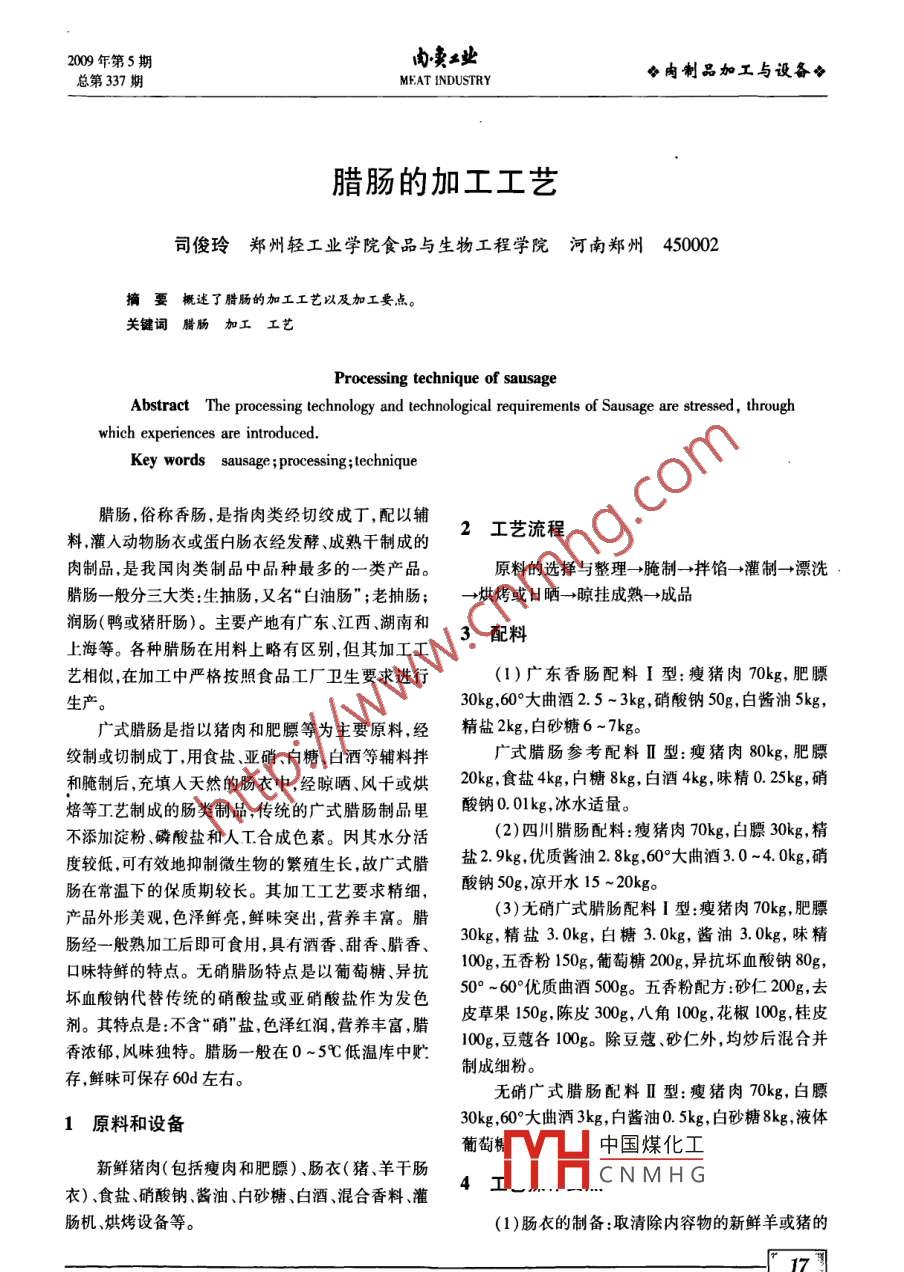 - 期刊名字:肉類工業(yè)