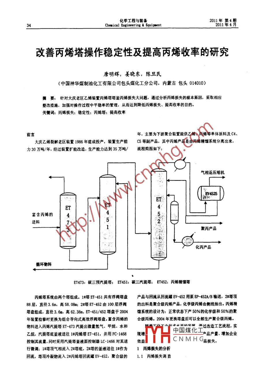 改善丙烯塔操作穩(wěn)定性及提高丙烯收率的研究