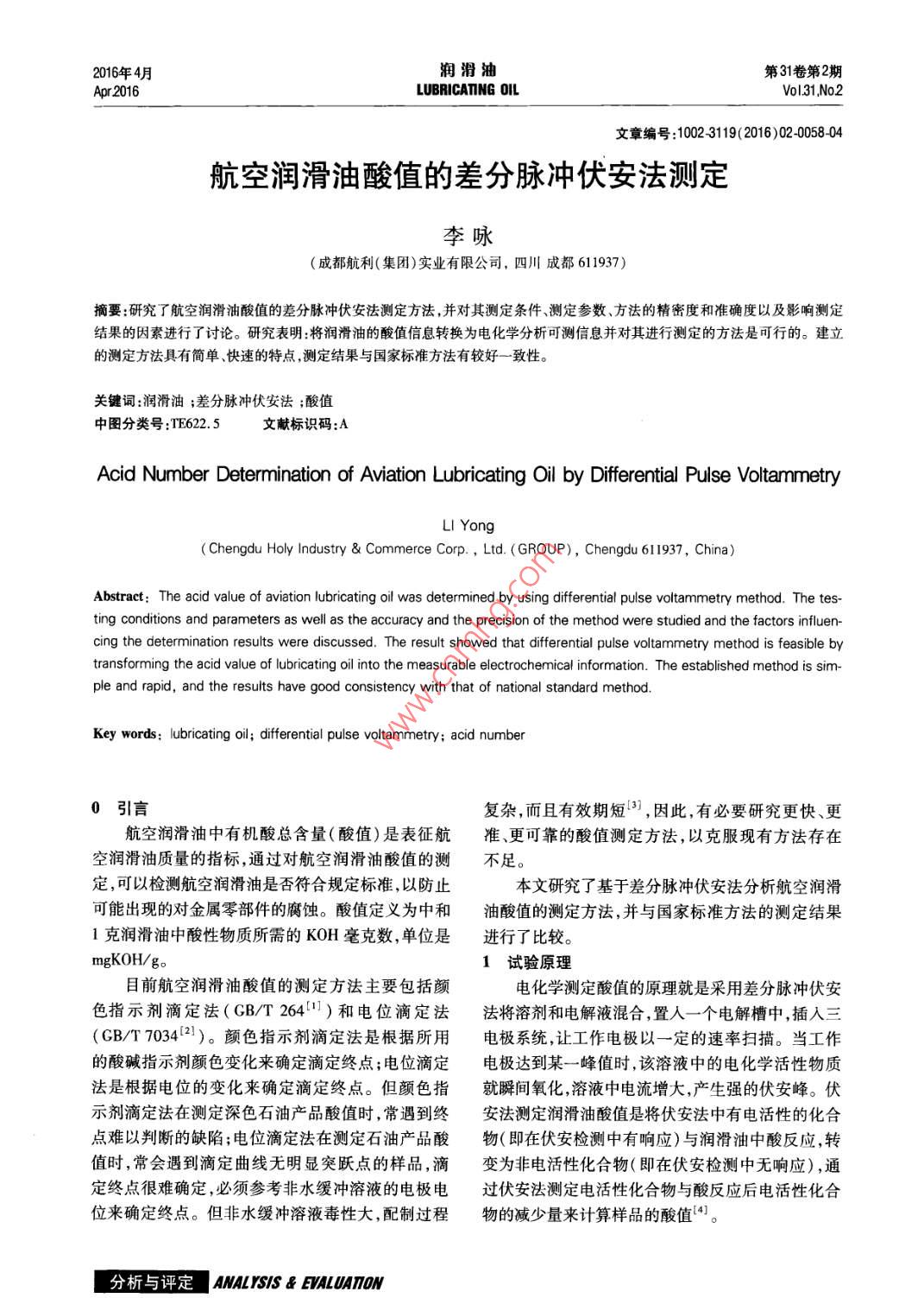 航空潤滑油酸值的差分脈沖伏安法測定