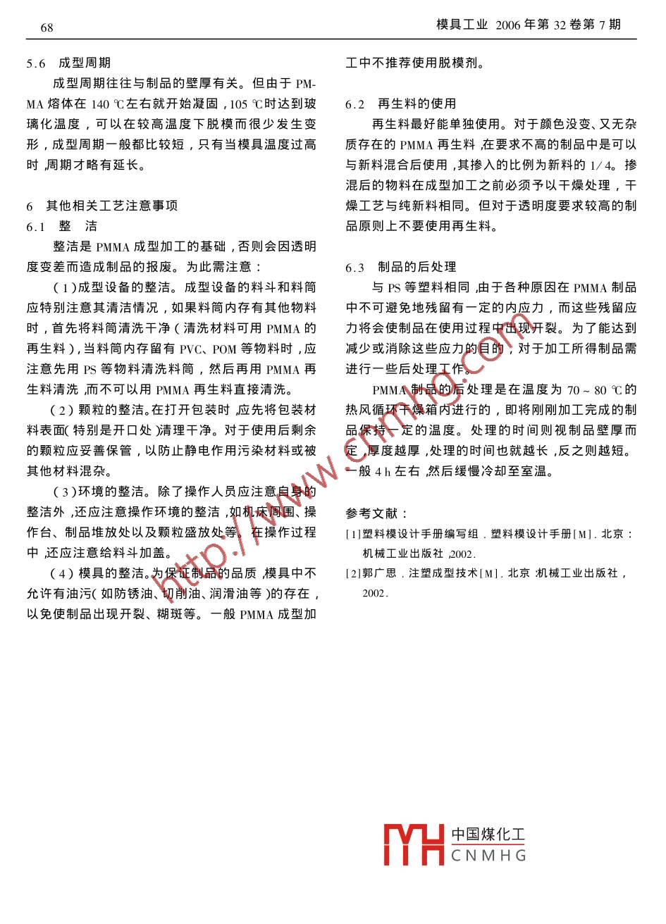PMMA成型工藝分析