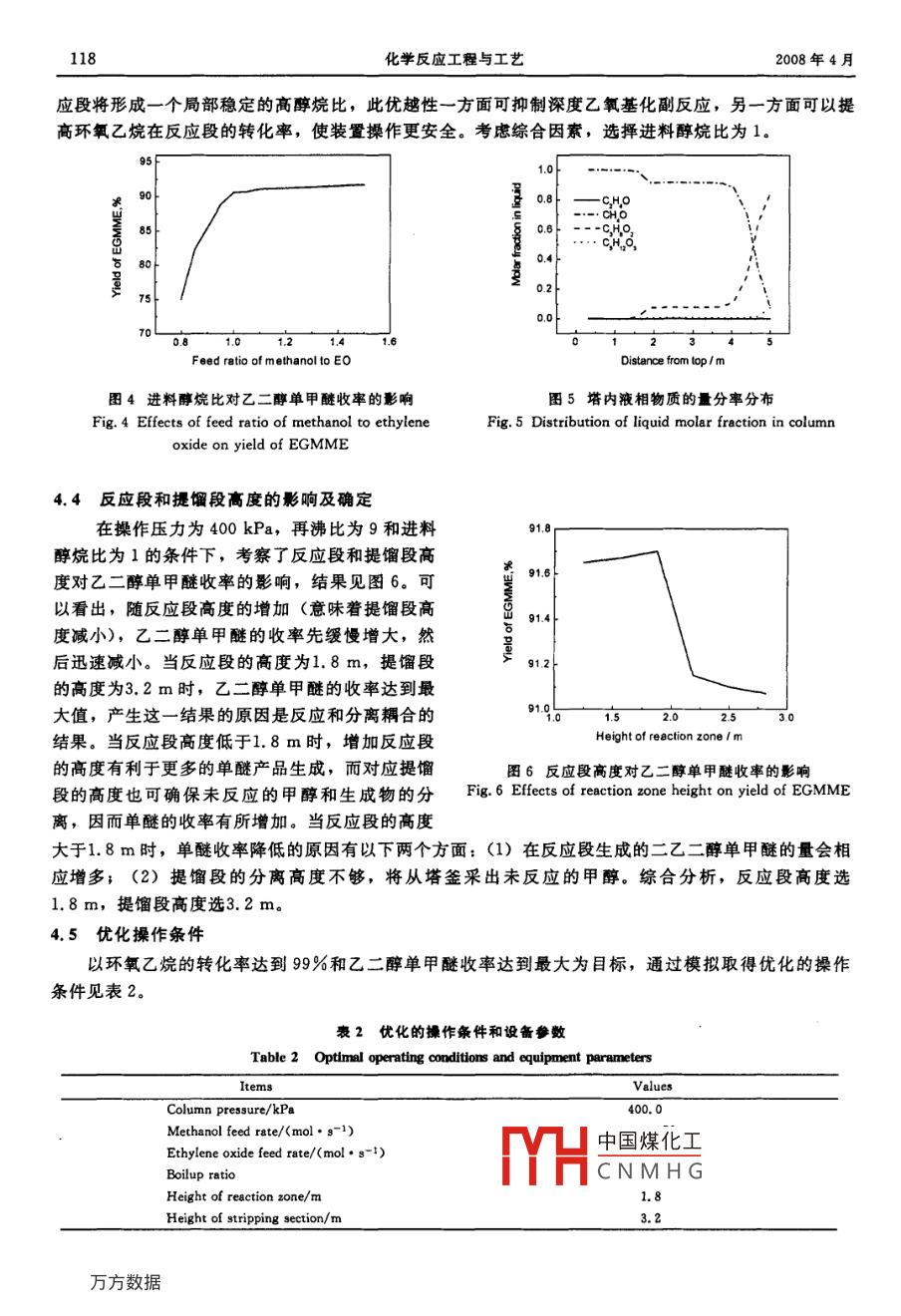 催化精餾法合成乙二醇單甲醚的模擬研究