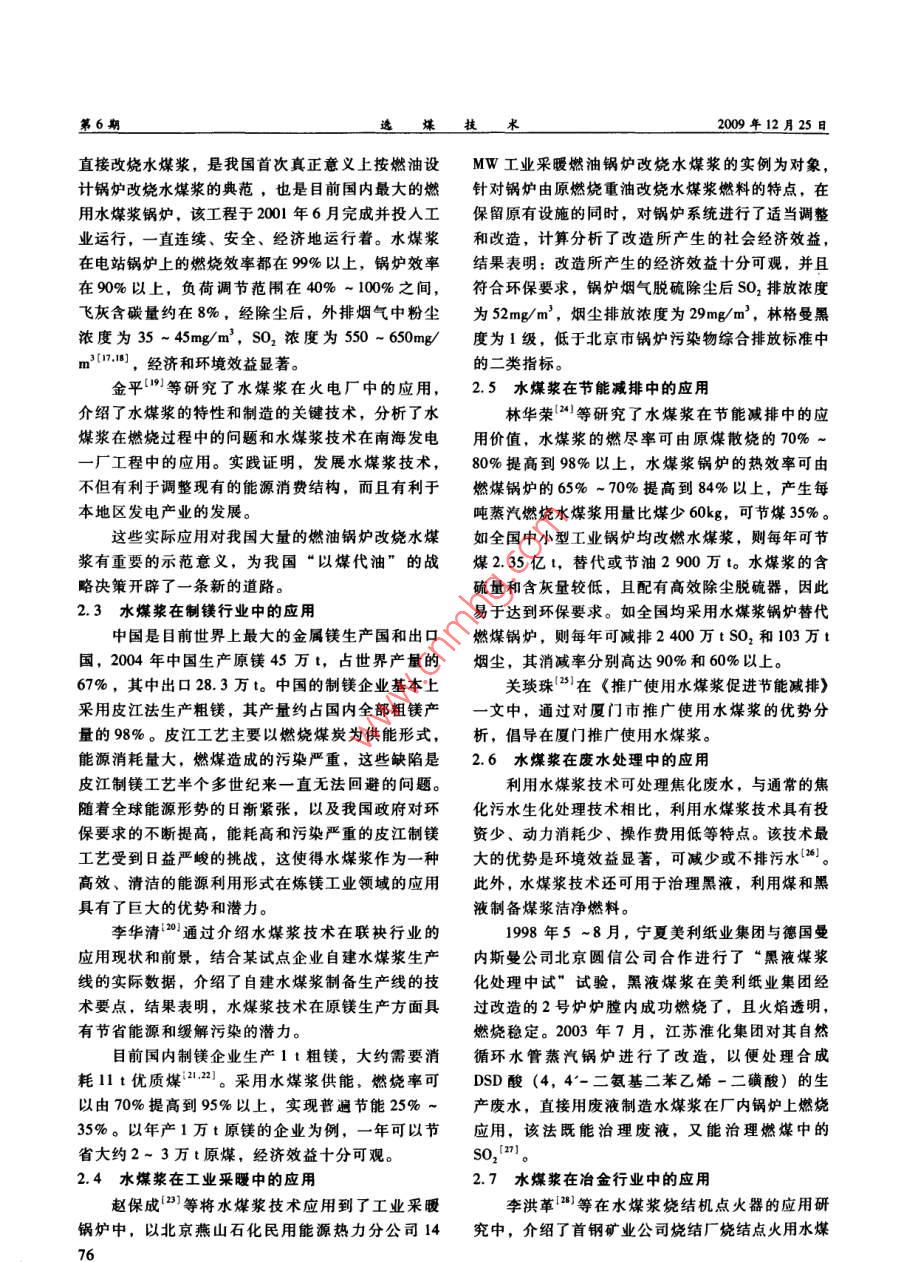 水煤漿的工業(yè)應(yīng)用進展