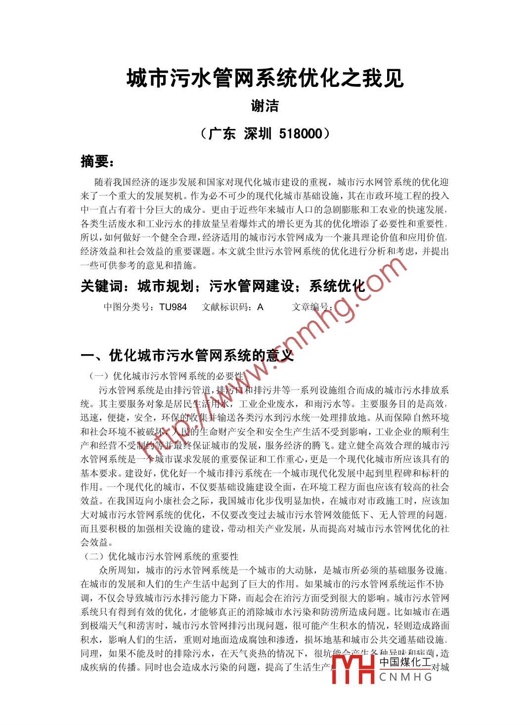 城市污水管網(wǎng)系統(tǒng)優(yōu)化之我見