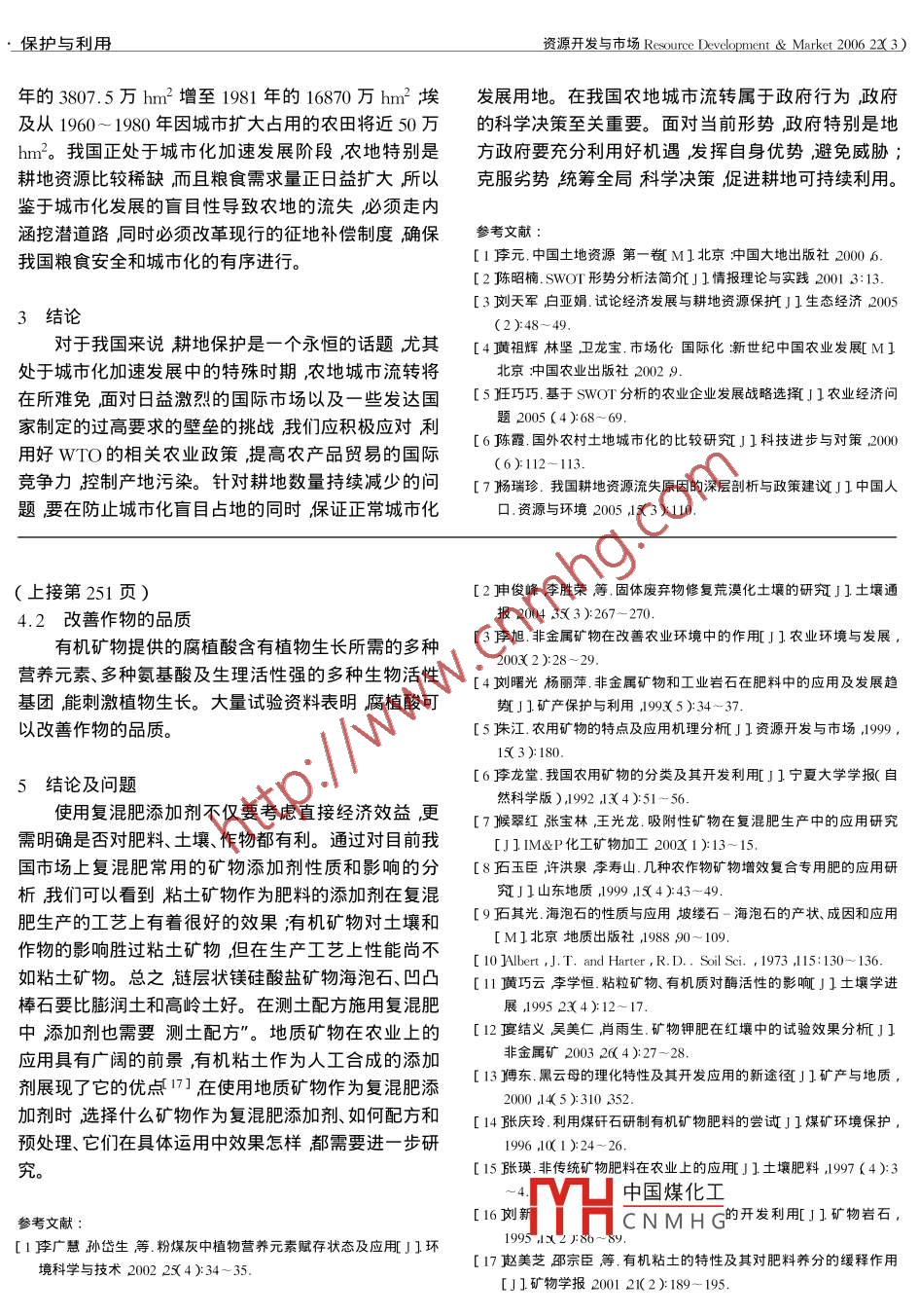 資源開發(fā)與市場(chǎng)Resource Development & Market 2006 223)專題研究礦物添加劑對(duì)復(fù)混肥料的影響徐宏林(中國地質(zhì)大學(xué)地球科學(xué)學(xué)院湖北武漢430074 )摘要添加劑是復(fù)混肥料中不可忽視的組分。介紹了幾種礦物添加劑在復(fù)混肥料中的作用。在測(cè)土配方施用復(fù)混肥中添加劑也需要測(cè)土配方”傳統(tǒng)的粘土礦物添加劑對(duì)復(fù)混肥生產(chǎn)和儲(chǔ)存有較好的效果,但對(duì)土壤和農(nóng)作物也有不利的影響。礦物添加劑有利于補(bǔ)充土壤有機(jī)質(zhì)復(fù)混肥料的應(yīng)用前景廣闊但還需進(jìn)一步 研究和探明既有利于復(fù)混肥生產(chǎn)和儲(chǔ)存,又有利于土壤和農(nóng)作物的地質(zhì)礦物和工藝。關(guān)鍵詞地質(zhì)礦物復(fù)混肥添加劑中圖分類號(hào)S14文獻(xiàn)標(biāo)識(shí)碼:A文章編號(hào):1005 - 8141( 2006 )3 - 0249 - 03Effect of Mineral Additives in Compound FertilizerXU Hong- lin( Geoscience College China University of Geosciences ,Wuhan 430074 )Abstract Additive was an important for compound fertilizer. After introducing some additives ,which were usually used ,we should real-ize the proess of making compound frilizer and the effect given by additives. Before using additive ,we should test soil to find which addi-tive was useful for soil. Clay was a good additive for making compound fertilizer ,but it also had defect for soil and corp. Organic mineralwas useful for soil and crop. Mineral had wild use ,we should make more study to find what additive was the best for both producing com-pound fertilizer and soil and crop.Key words imineral icompound fertilizer additive農(nóng)業(yè)是國民經(jīng)濟(jì)的基礎(chǔ)土壤是農(nóng)業(yè)的基礎(chǔ)而要物添加劑主要有兩類:-類是粘土礦物,如高嶺土、膨有良好的農(nóng)業(yè)收入并保持土壤的可持續(xù)發(fā)展,肥料就潤土、海泡石、凹凸棒石等;另一類是有機(jī)礦物,如泥.不容忽視。目前,國際上發(fā)達(dá)國家普遍使用復(fù)混肥。炭、風(fēng)化煤、褐煤等。以上礦物在現(xiàn)實(shí)中都或多或少地?fù)?jù)GB15063 - 2001《復(fù)混肥料(復(fù)合肥料)》規(guī)定":復(fù)混混有其它礦物本文談到某種礦物時(shí)指的是其中所含肥料指氮、磷、鉀3種養(yǎng)分中,至少有2種養(yǎng)分標(biāo)明了的主要礦物成分。量的,由化學(xué)方法和(或)摻混方法制成的肥料”;又規(guī)高嶺土的主要礦物成分是高嶺石,化學(xué)式為定”:復(fù)混肥料中可以有適當(dāng)?shù)奶砑游锇ㄕ惩?、高嶺ALSiO1o( 0Hλ,相應(yīng)的理論化學(xué)成分為:SiO2土等造粒用的填充劑、粘合劑"(本文統(tǒng)稱它們?yōu)樘砑?6.. 54%、Al2O39. 50%、H2O13. 96%。此外,還有少劑)。礦物添加劑開始是生產(chǎn)技術(shù)上用來調(diào)節(jié)復(fù)混肥量Mg、Ca、NaK等雜質(zhì)。其單個(gè)的礦物晶體是由一的濕度、硬度等以便復(fù)混肥的造粒生產(chǎn)經(jīng)營者往往考層四面體硅氧片和一層八面體水鋁片相間組成的二八慮用它來稀釋肥料的養(yǎng)分濃度,各行的科技工作者使面體1:1型礦物;常呈白色土狀塊體具吸水性吸水用地質(zhì)礦物、垃圾、工農(nóng)業(yè)廢棄物等12]作為添加劑,后體積不膨脹但具可塑性。以實(shí)現(xiàn)它們?cè)谵r(nóng)業(yè)上的利用價(jià)值。地質(zhì)礦物在農(nóng)業(yè)上膨潤土中的代表性成分為蒙脫石屬于2:1型礦應(yīng)用面廣歷史悠久種類較多[3~6] ,最近國際上還召物,其理想化學(xué)式為( 1/2Ca ,Na ).66 Als,34 Mg0.66開了首屆Rocks for Crops"學(xué)術(shù)會(huì)議。本文介紹了復(fù)[Si,O20IOH): nH2O 屬二八面體礦物每個(gè)晶體單混肥中礦物添加劑的作用。元由兩層硅氧片夾一層八面體的水鋁片組成晶層之間很容易發(fā)生不同程度的膨脹,內(nèi)表面積遠(yuǎn)遠(yuǎn)大于外1復(fù)混肥料常用的礦 物添加劑生產(chǎn)復(fù)混肥料所需的大量添加劑一般來自地質(zhì)礦表面積單元層間含有層間水層間具有可交換性的Ca2+中國煤化工]晶取代比高嶺石多。產(chǎn)本文統(tǒng)稱它們?yōu)榈V物添加劑。目前我國常用的礦海YHCNMHGH2O);SinO3o(OH).8H2O ,理論的化學(xué)成分為SiO2 55. 65%、MgO收稿日期2006 -04- 18修改日期2006-05- 19作者簡介徐宏林( 1975- )男江西省宜黃縣人農(nóng)學(xué)學(xué)士助理24. 89%、H2O+ 8. 34%、H2O- 11. 12%屬典型的三八農(nóng)藝師碩士在讀研究方向?yàn)榈谒募o(jì)地質(zhì)與農(nóng)業(yè)生態(tài)地質(zhì)。面體礦物常有鋁、鐵等類質(zhì)同象混入物;凹凸棒粉的249.資源開發(fā)與市場(chǎng)Resource Development & Market 2006 22( 3)主要礦物成分是坡縷石,其理想的結(jié)構(gòu)式為致相等,但成粒率更大顆粒強(qiáng)度更小這可能與添加MgsSisO2( OH )( OH2 ): 4H2O它和海泡石同屬含水劑中水分含量、雜質(zhì)成分、細(xì)度等有關(guān)。使用粘土礦物的鏈層狀鎂硅酸鹽礦物都具有2:1型結(jié)構(gòu),自然界發(fā)添加劑用團(tuán)粒法生產(chǎn)復(fù)混肥也有很好的粘結(jié)效果7]。現(xiàn)的坡縷石均有相當(dāng)量的Al代Mg在其八面體陽離礦物添加劑對(duì)復(fù)混肥料的養(yǎng)分有較好的吸附作用,在子中兩者數(shù)量相近所以它是二八-三八面體礦物。復(fù)混肥的保存中能吸附其中的揮發(fā)性NH3并能吸收泥炭又稱草炭是沒有完全分解的植物遺體的堆游離的水分使復(fù)混肥不至于潮解和結(jié)塊。生產(chǎn)實