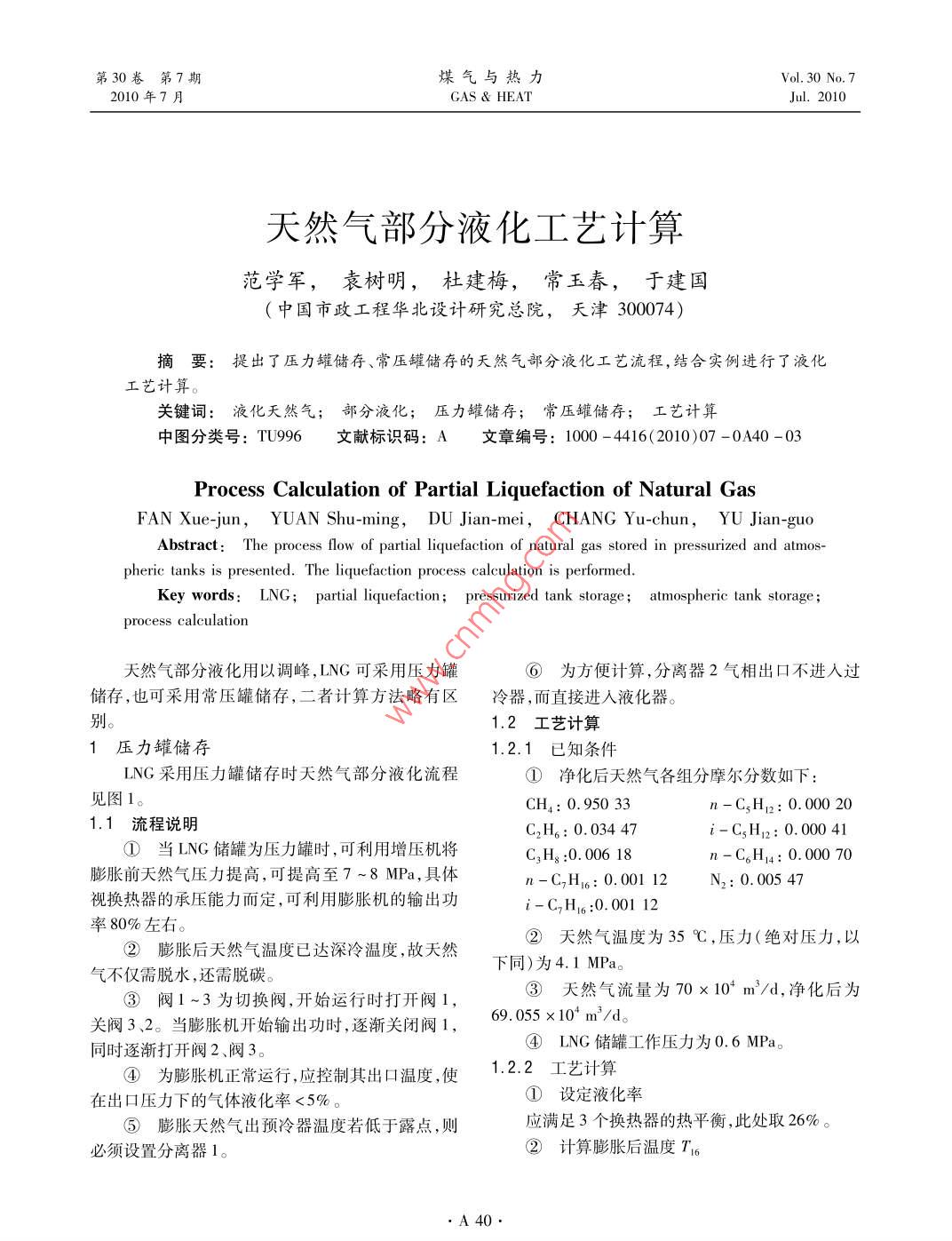 天然氣部分液化工藝計算